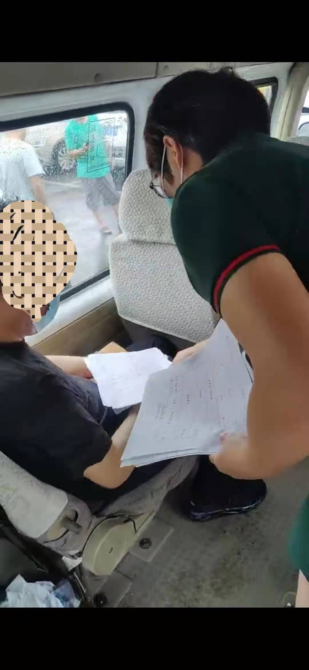 因为疫情原因,我们不可以进入院里,只能借助他们交接时上车说服张某,目前只能坐车里等。