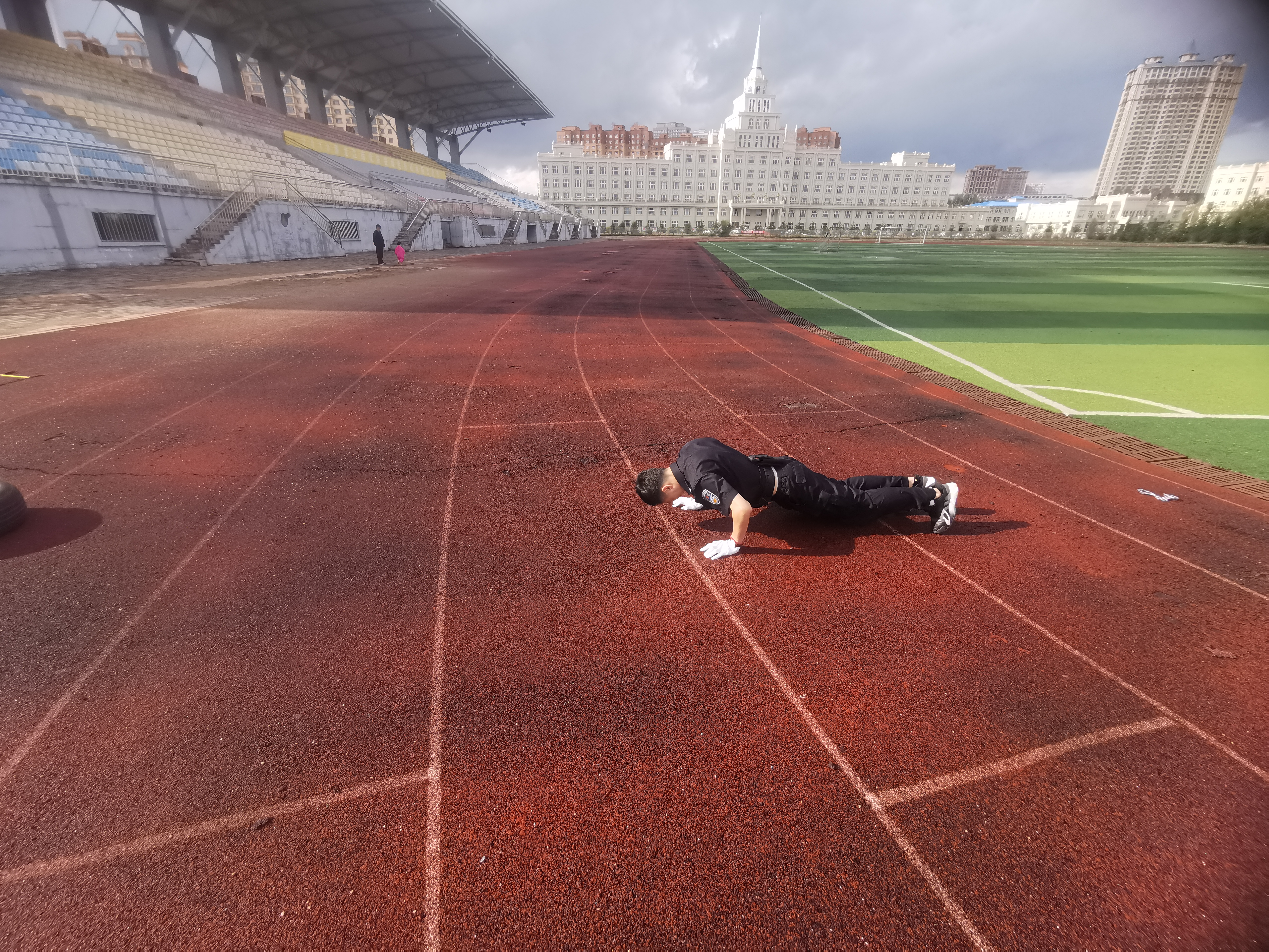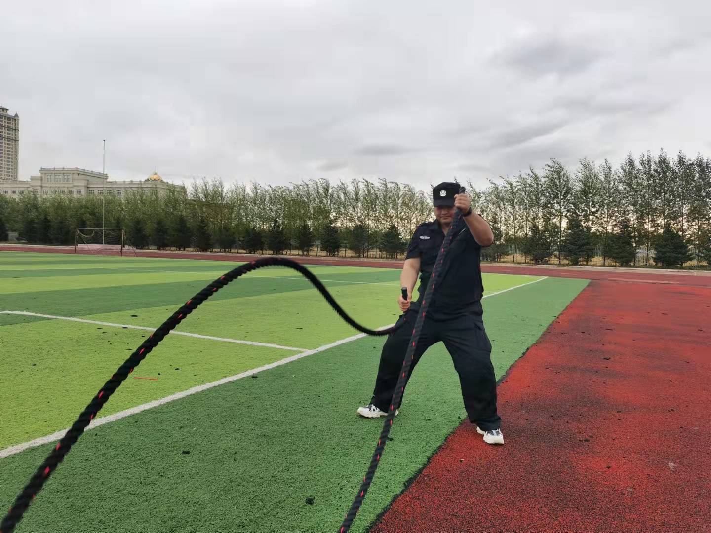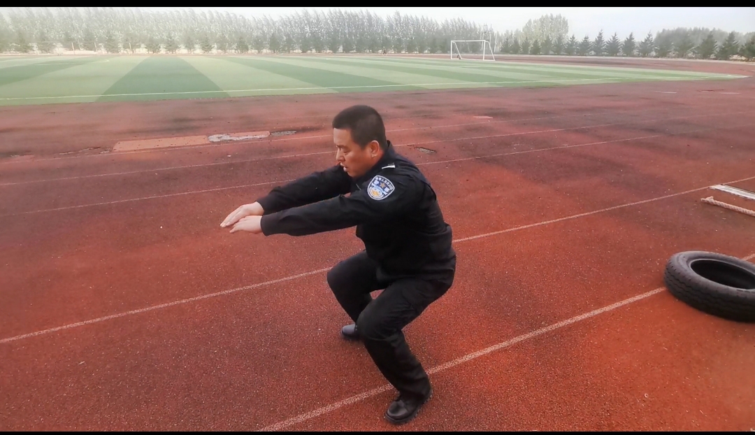 会议结束后,全体法、辅警来到训练场,进行体能训练。