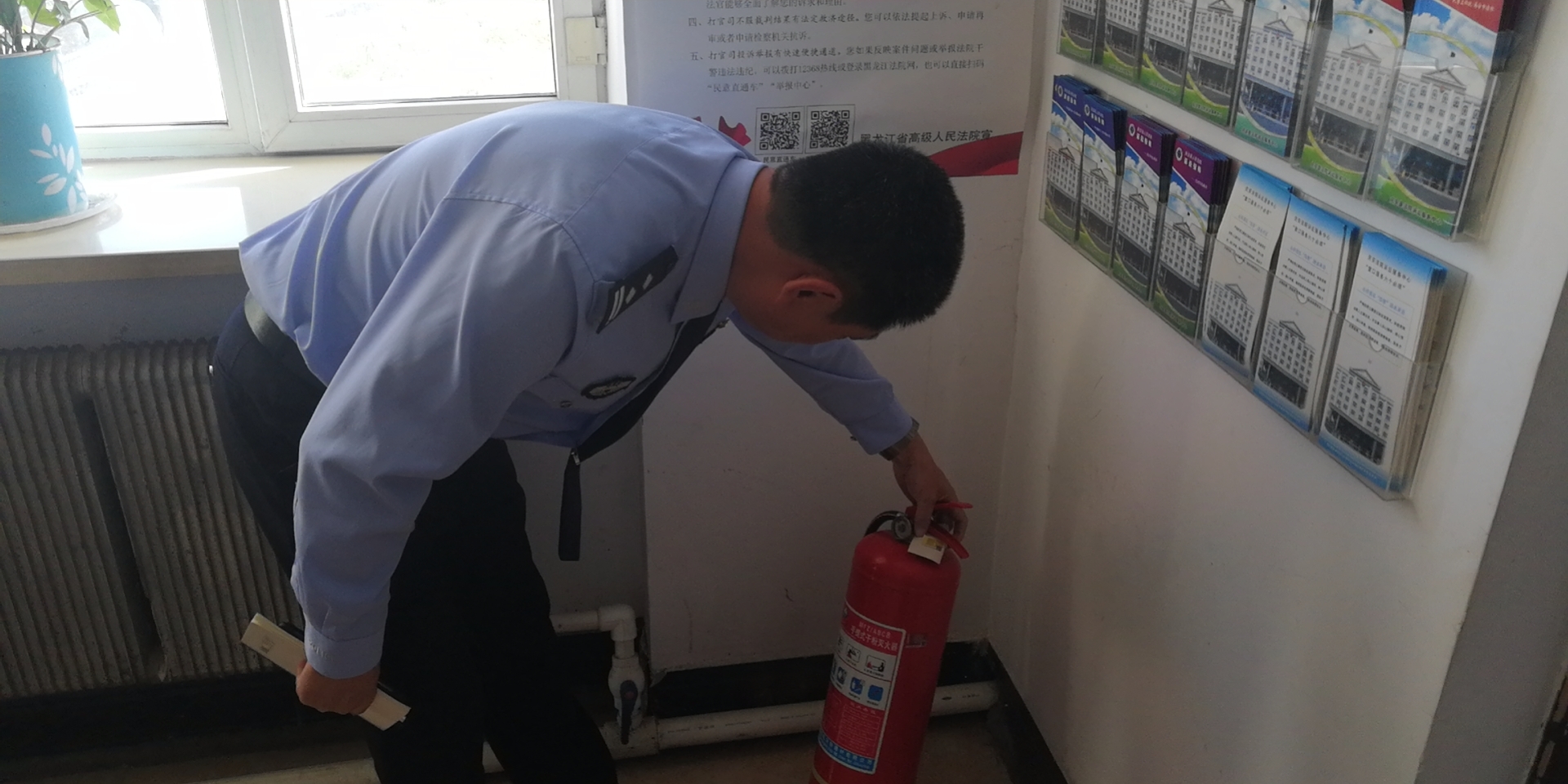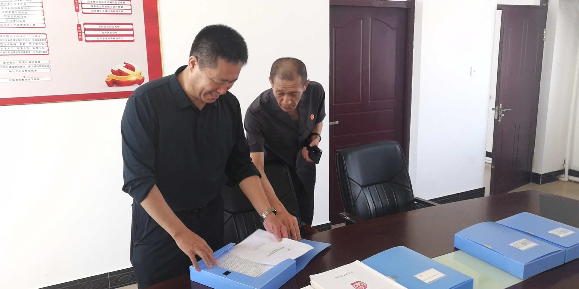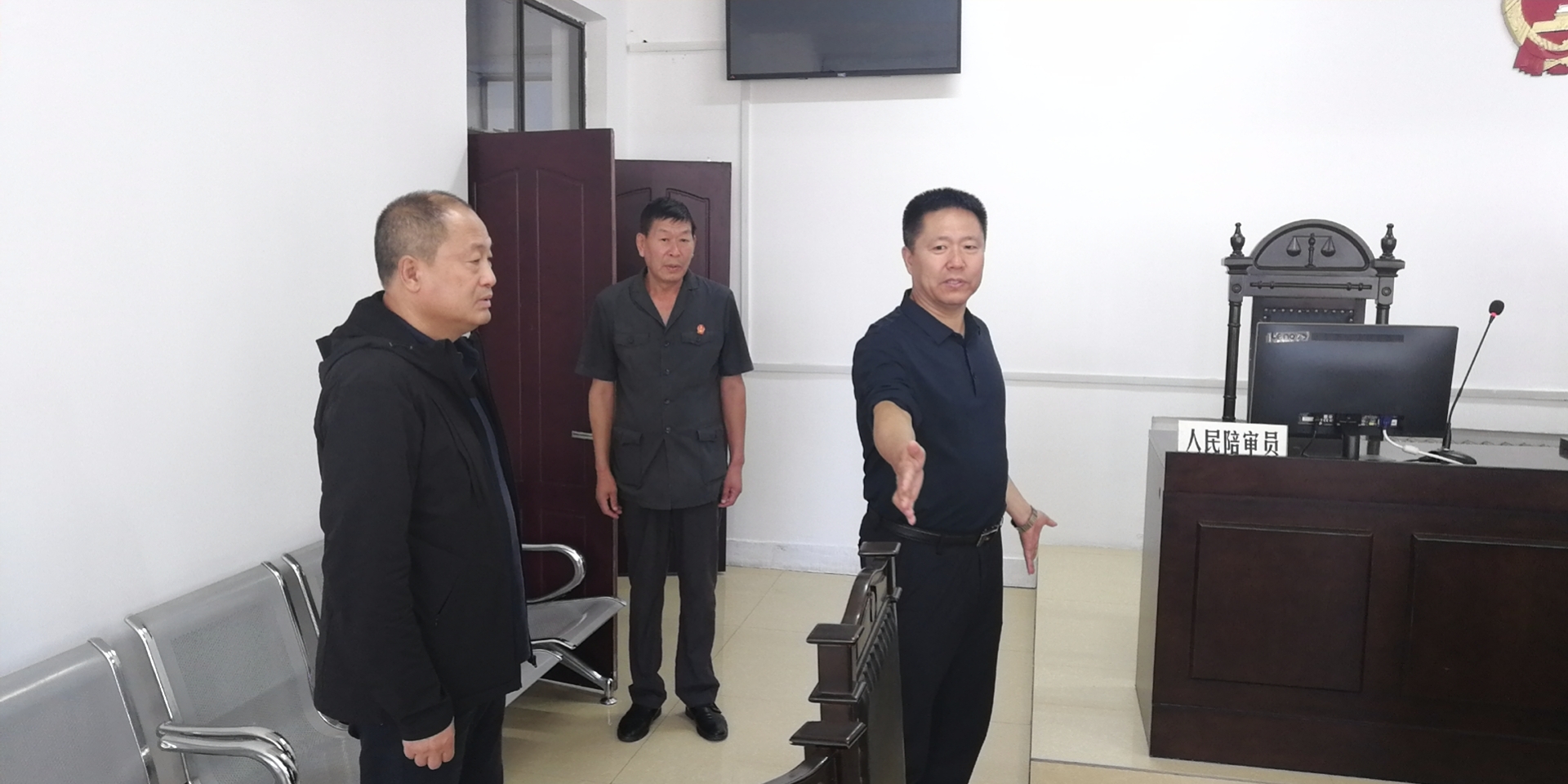 9月17日下午,庆安县人民法院党组书记、代院长高玉阁到法庭督导检查工作,审判委员会专职委员吴海峰、法警大队队长金春年陪同。