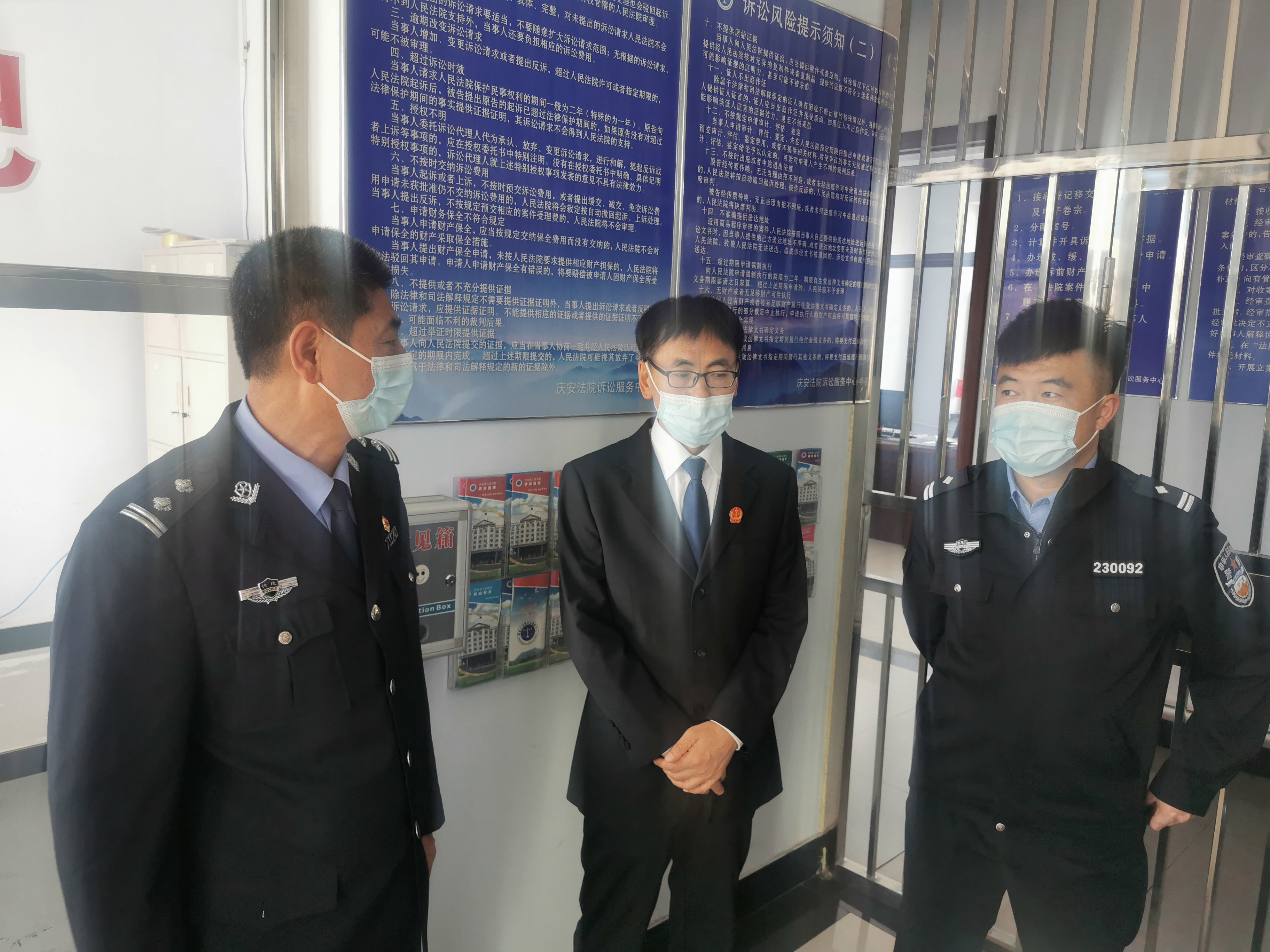 庆安法院法警大队对法庭疫情防控及警务保障工作督导检查