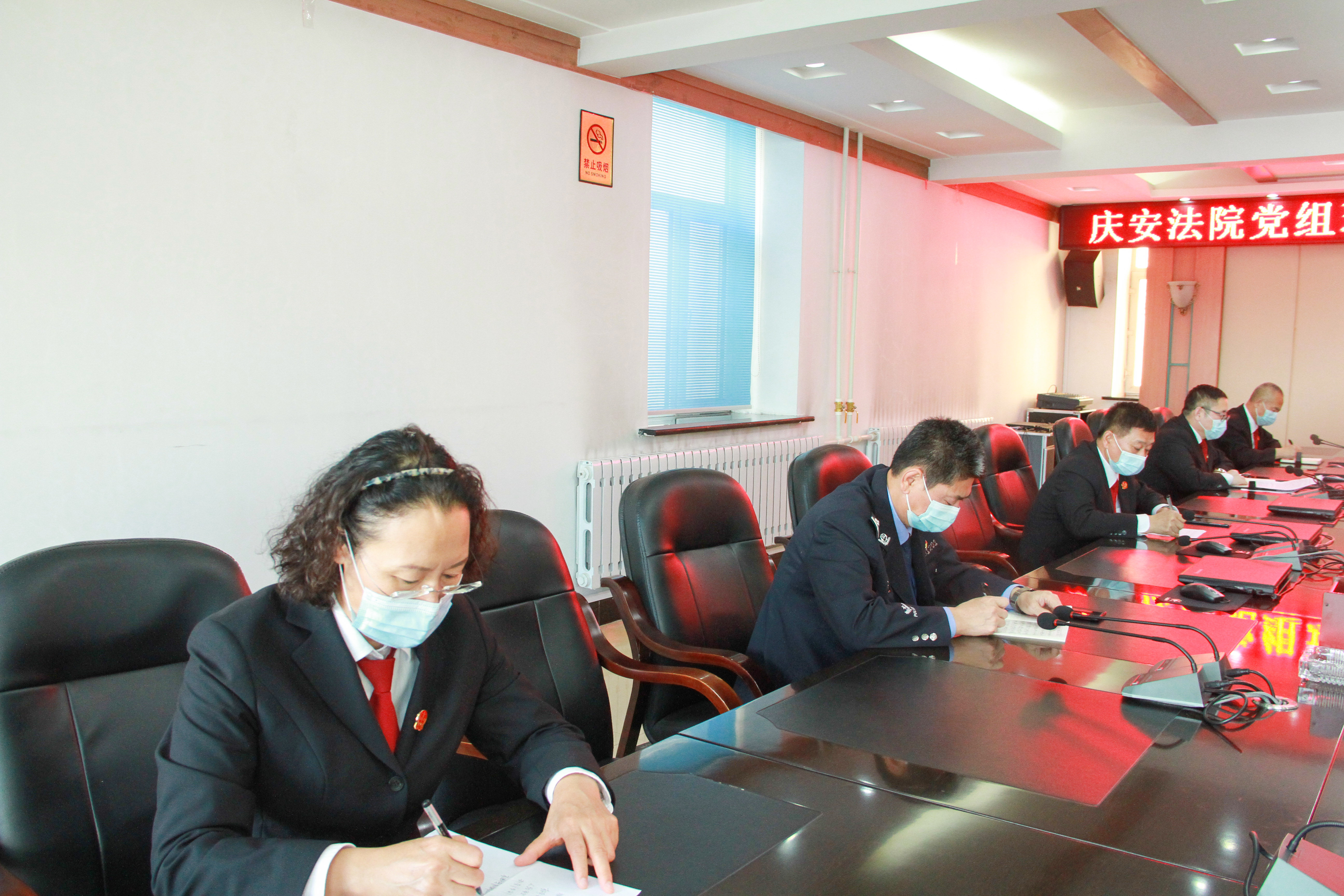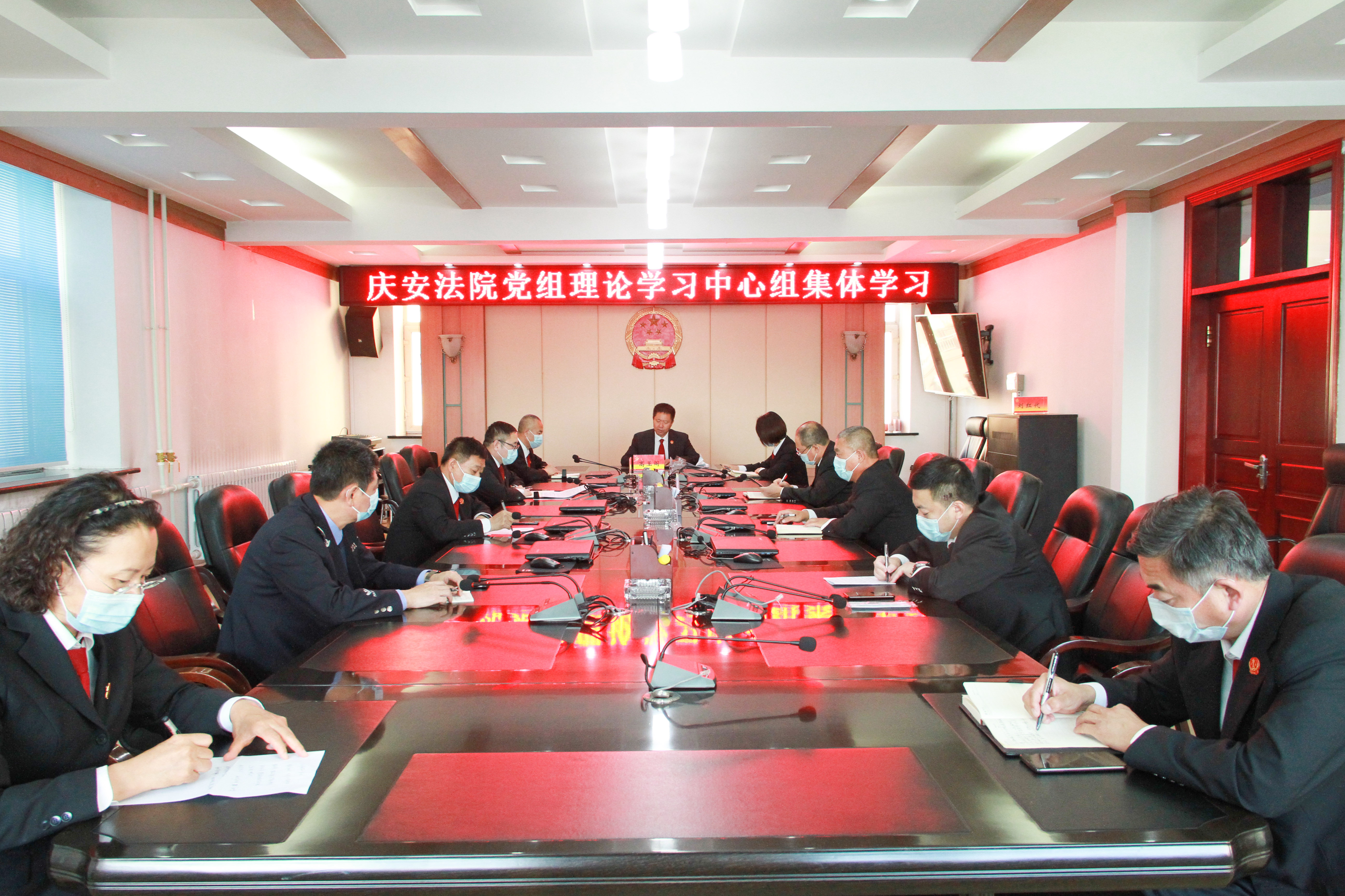 10月29日下午,庆安县人民法院党组利用周五学习日时间开展理论学习中心组集体学习活动,对最高院印发的《人民法院工作人员近亲属禁业清单》和绥化中院党组书记、代院长程显波同志在《法治日报》刊发的署名文章进行了深入学习研讨。院党组书记、代院长高玉阁主持,党组成员及各部门长参加了学习研讨。