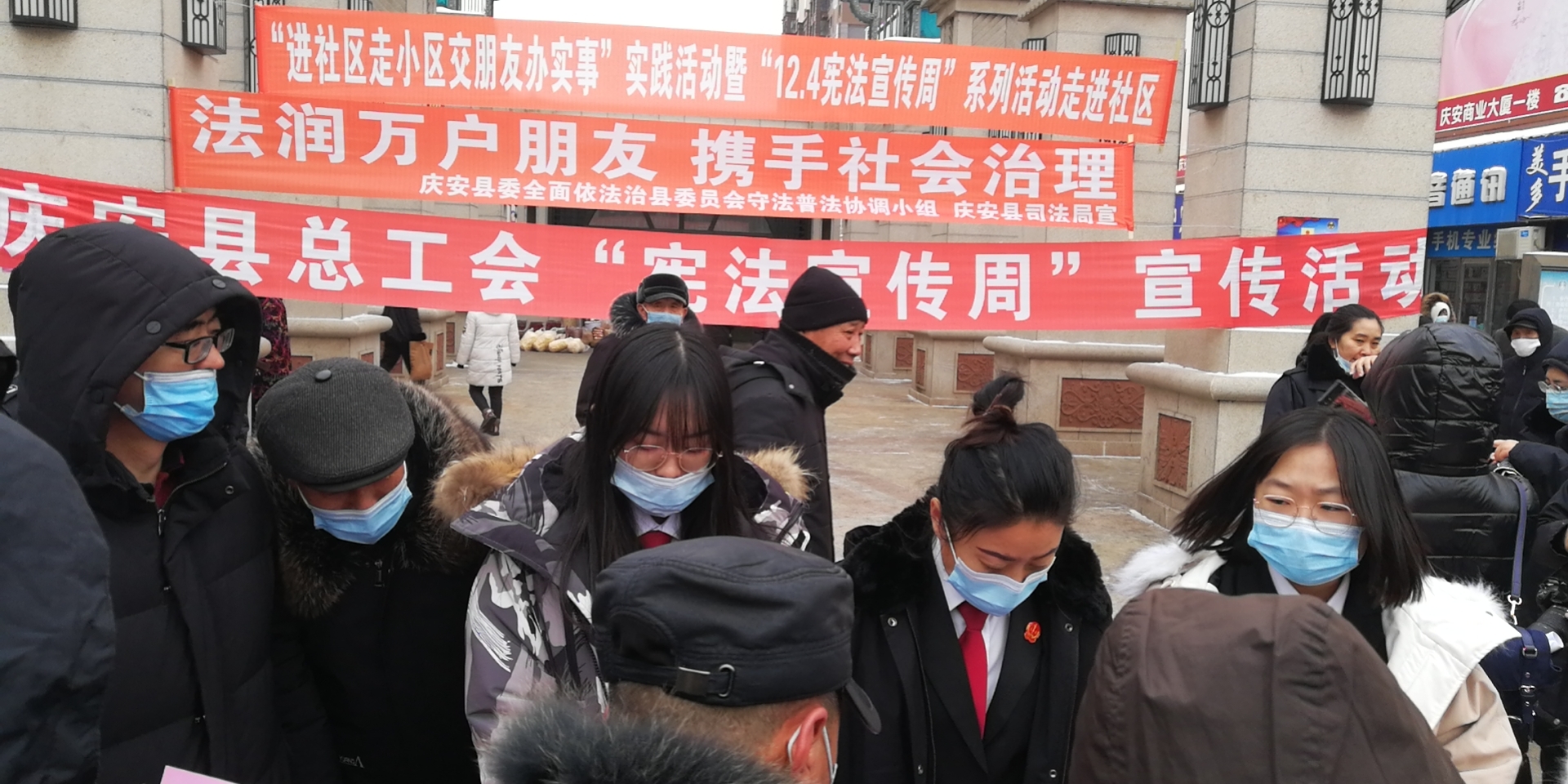 12月2日,在第八个国家宪法日即将来临之际,庆安县人民法院组织法官到商业街群众聚集地开展了“宪法宣传周”宣传活动。