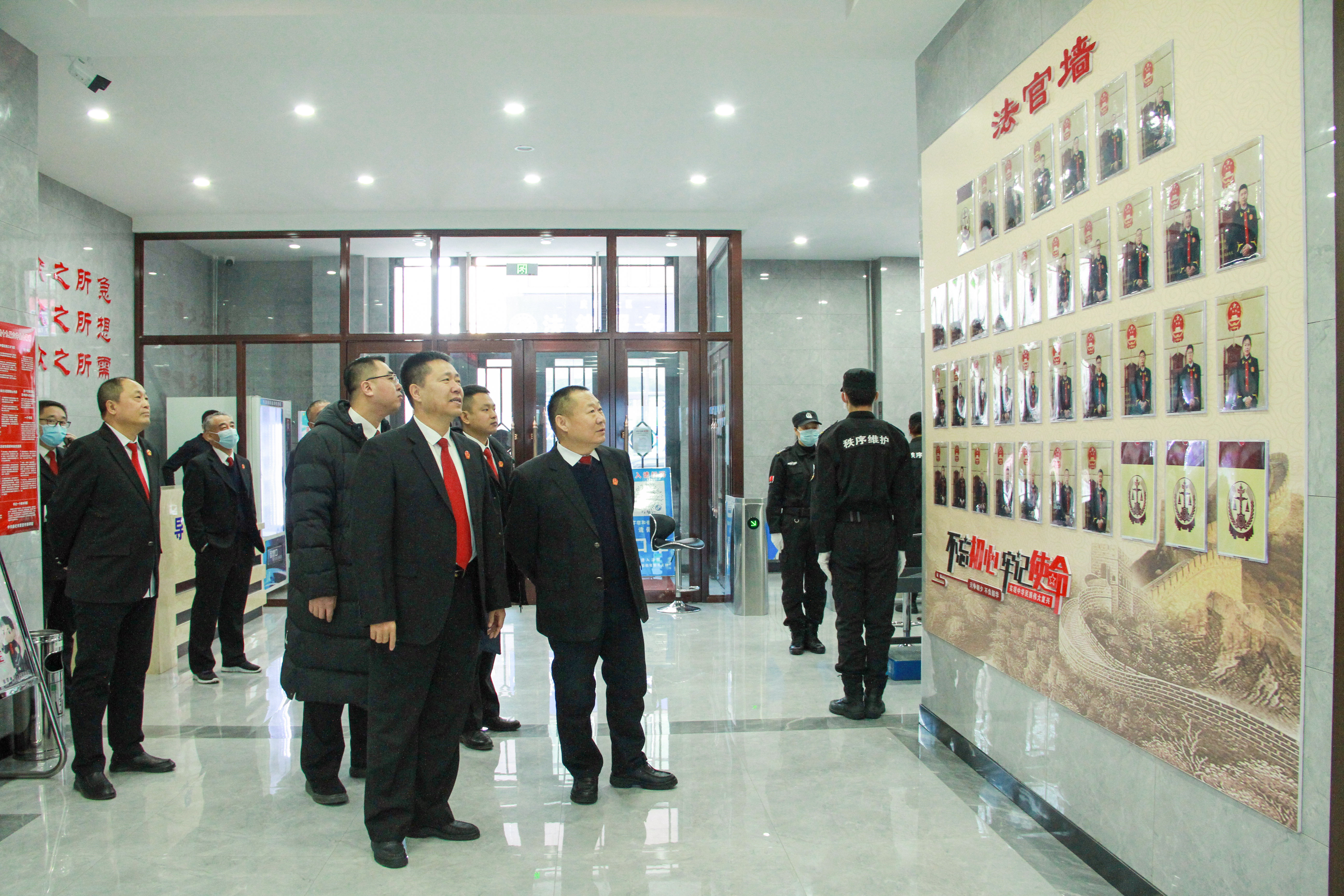 郝永明到庆安法院诉讼服务中心“走流程”并视察相关工作,参观了诉调对接中心、“说和人老李”调解工作室、党建文化长廊、廉政文化长廊等区域,对诉讼服务工作及法院文化建设工作提出了指导性意见。
