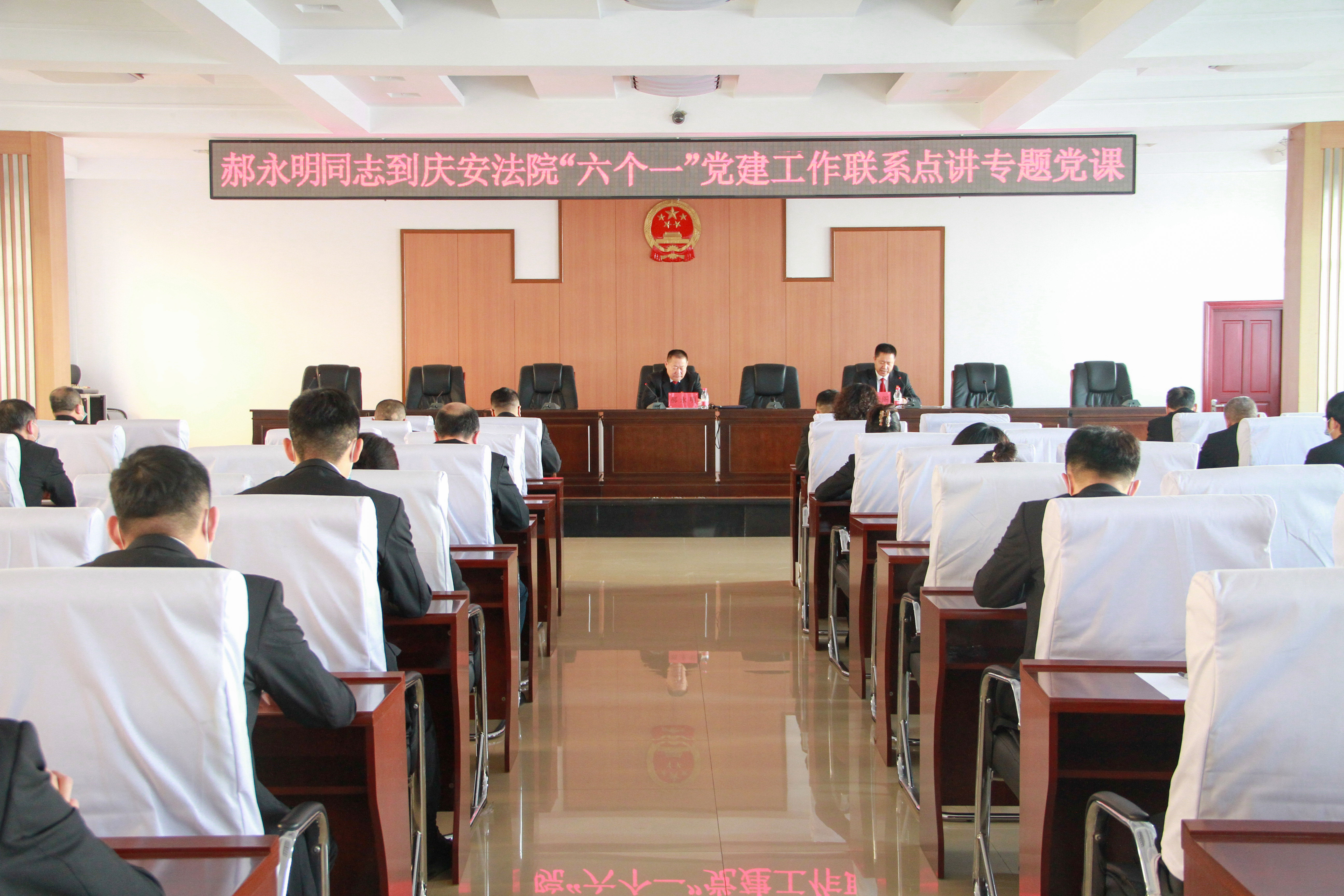 按照中院党组年初的既定部署和《全市法院2021年党建工作指导意见》的总体安排,12月24日,绥化市中级人民法院审判委员会专职委员郝永明到庆安县人民法院开展“六个一”党建联系点工作,对庆安法院党建工作进行检查和指导。