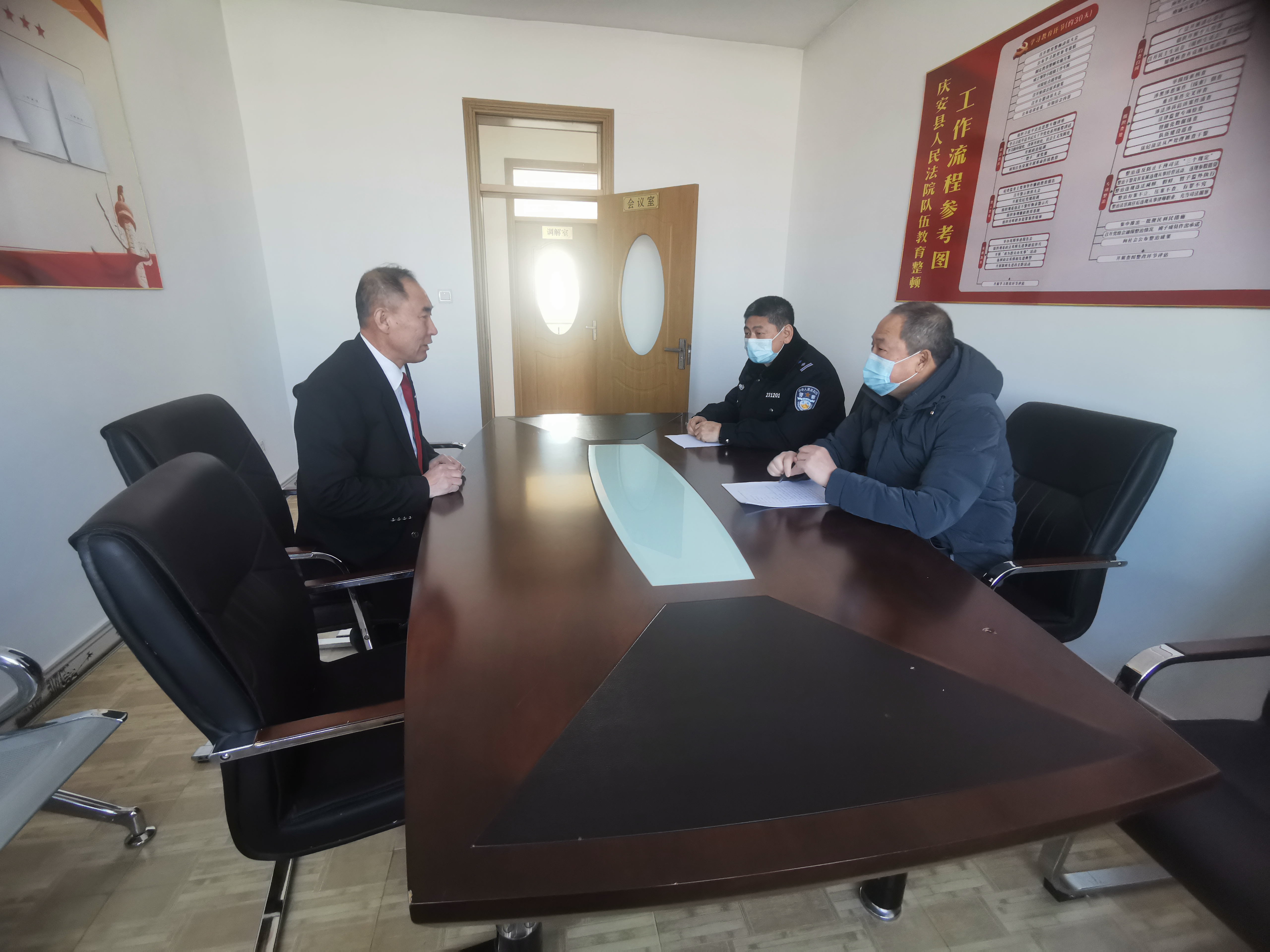 12月28日、29日,庆安县人民法院审判委员会专职委员吴海峰、法警大队大队长金春年利用两天时间对五个派驻法庭开展“元旦”节前安全检查活动。