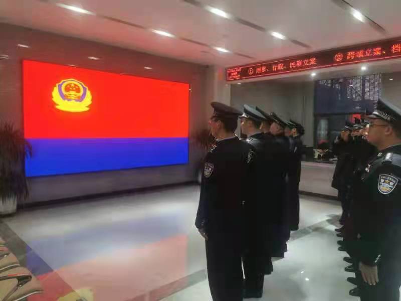会后,庆安法院司法警察大队举行向警旗宣誓活动,每名司法警察以最洪亮的声音、最饱满的热情,高举右手,庄严宣誓。