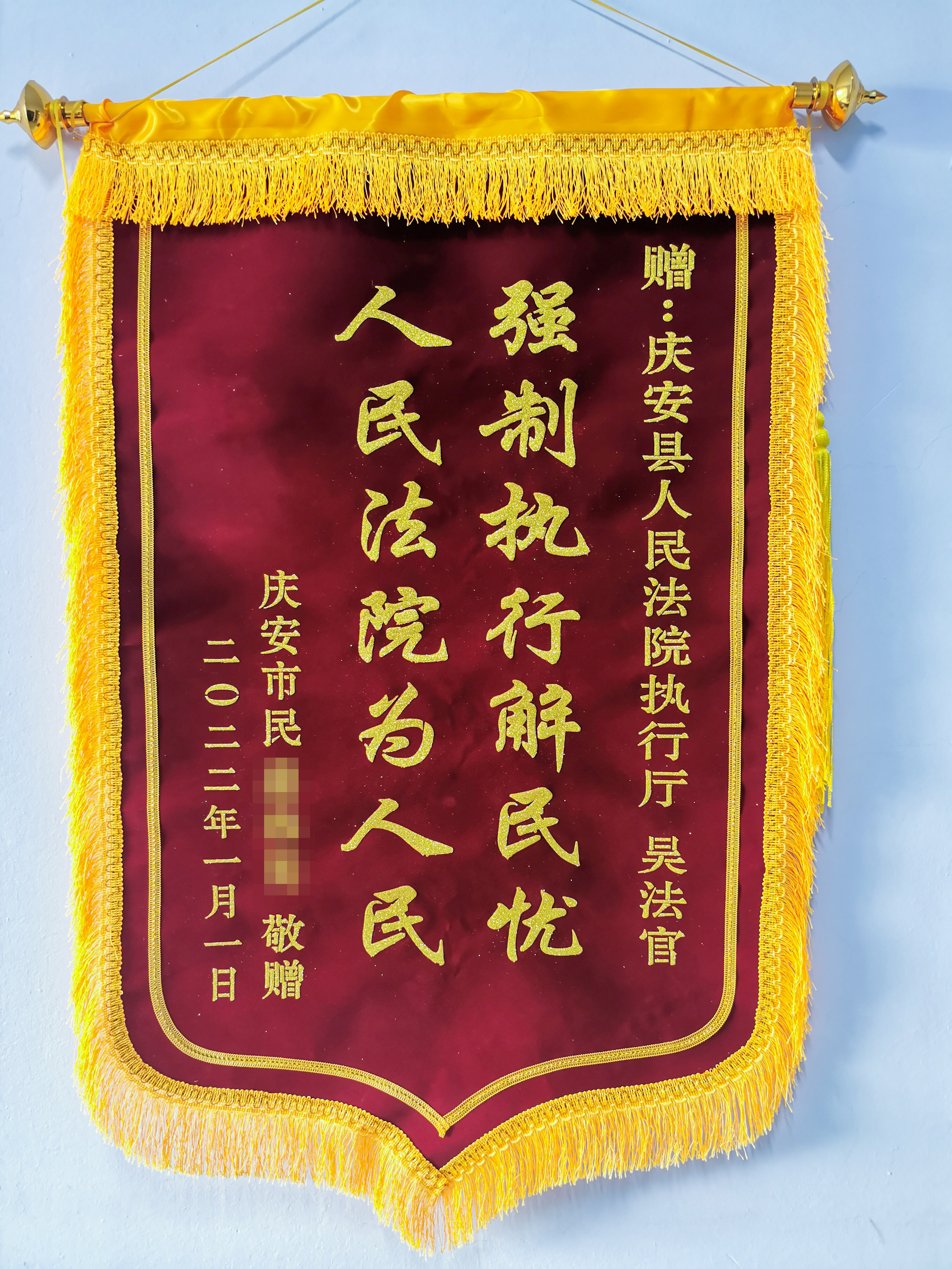 新年伊始,东北的天气格外寒冷,但是庆安法院执行干警的工作热情和执行干劲却越发高涨,一派热闹的景象。这不,当事人又送来了一面锦旗,更增春意。