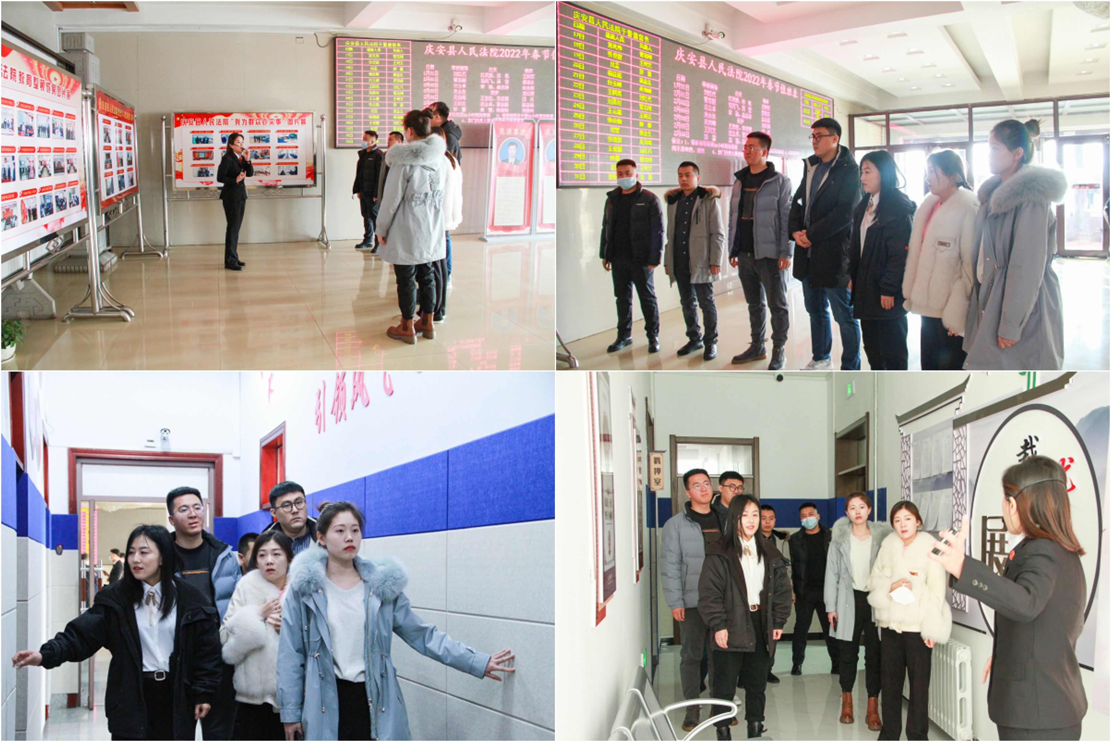2月7日上午,庆安县人民法院举办迎新“开放日”活动,组织2022年新招聘聘用制人员参观法院,零距离感受法治氛围,促进新入职人员全面了解未来的工作环境和文化氛围。