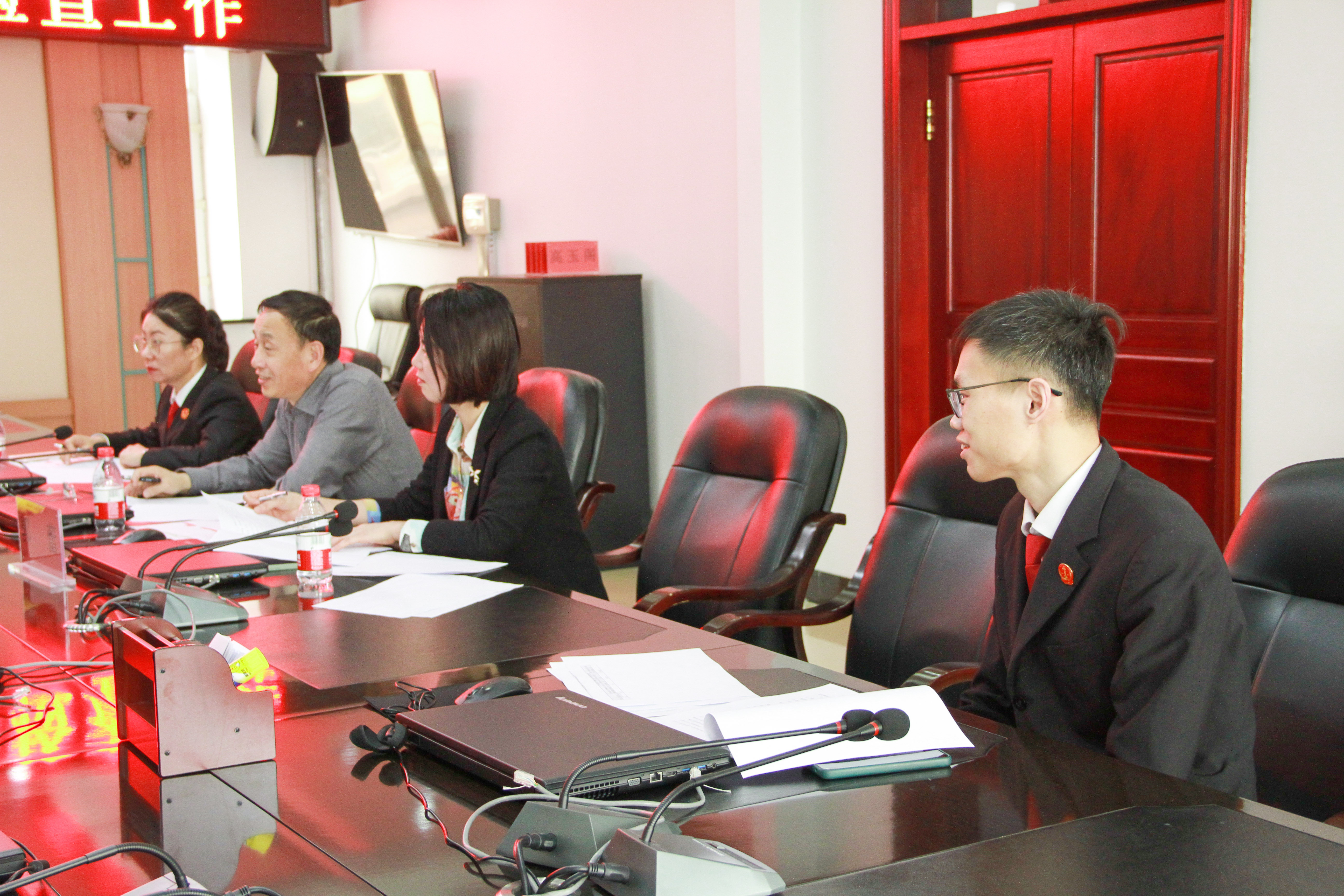 4月19日下午,绥化市中级人民法院立案庭庭长张军、诉调对接中心主任王鹤到庆安县人民法院督导检查司法作风、立案诉服、指导平台等方面工作。庆安法院党组成员、副院长王树文、党组成员、副院长郭蕾、立案庭负责人李婷陪同检查。