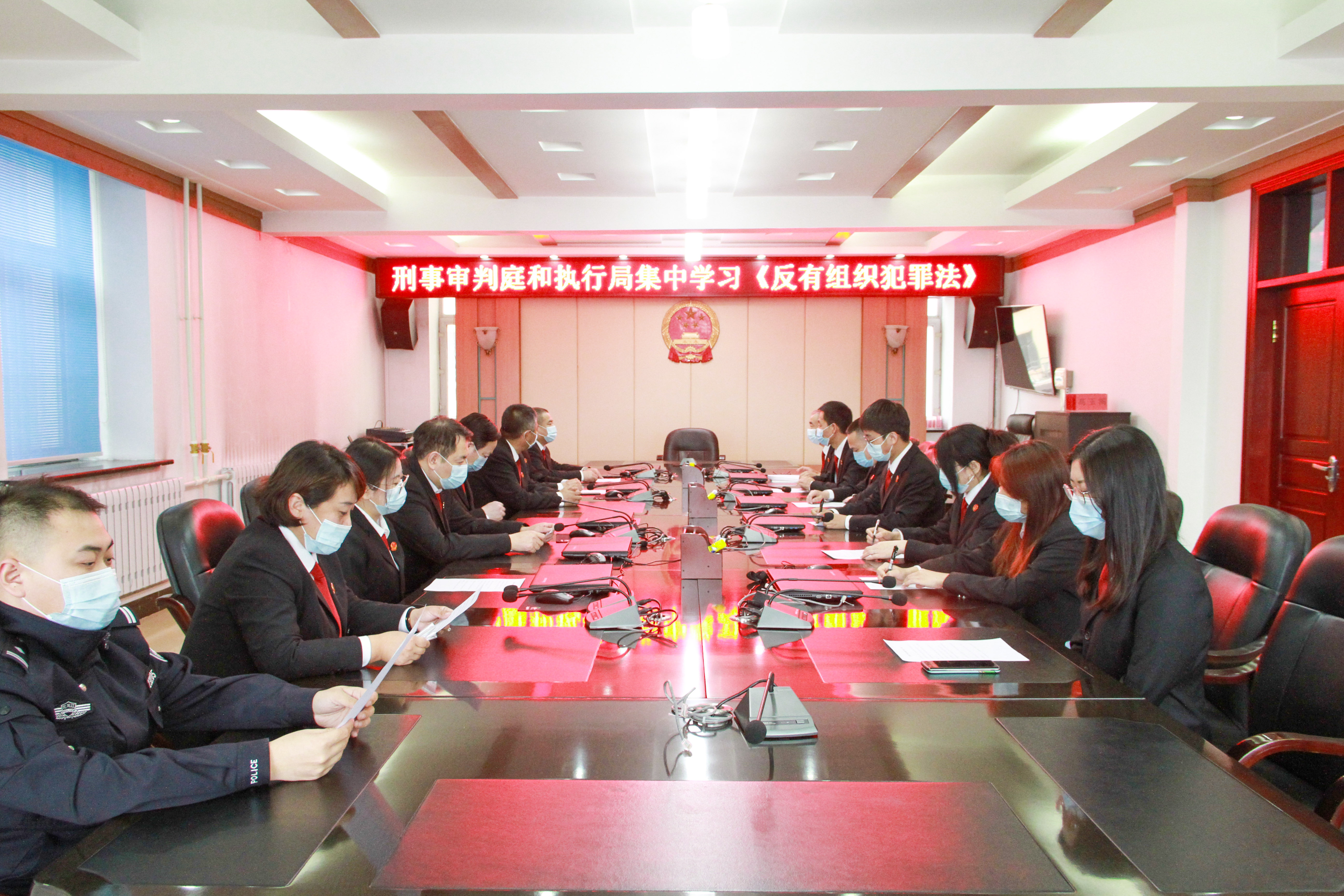 干警们对《反有组织犯罪法》9章77条内容进行了认真学习,并对打击黑恶犯罪审判执行工作密切相关的案件办理、涉案财产认定和处置等内容进行了深入的交流。