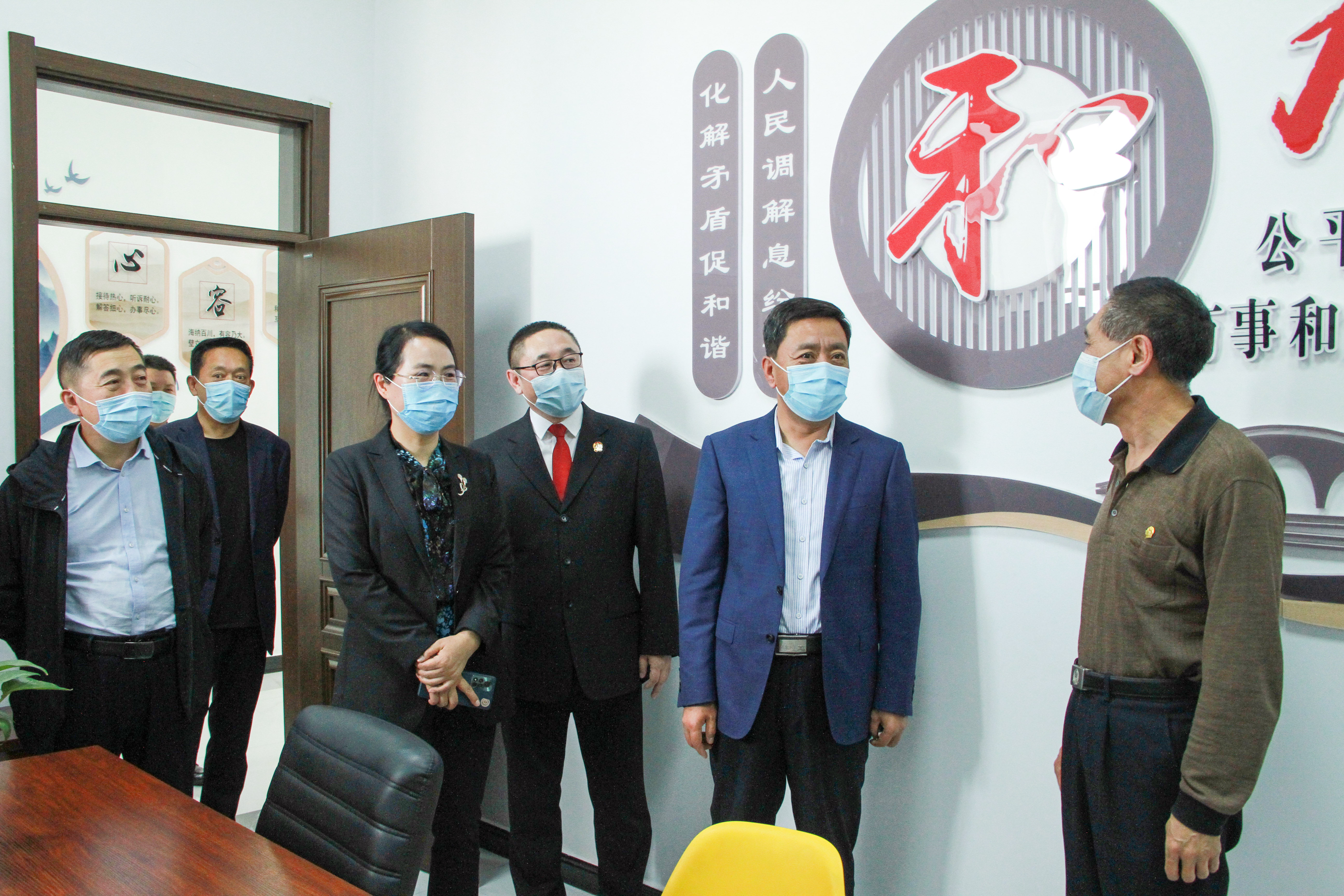 在“说和人老李”调解工作室大家亲切慰问了第二中学退休的老校长李玉君同志,对他发挥余热在人民调解战线上作出的优异成绩感到骄傲,并给予高度评价。