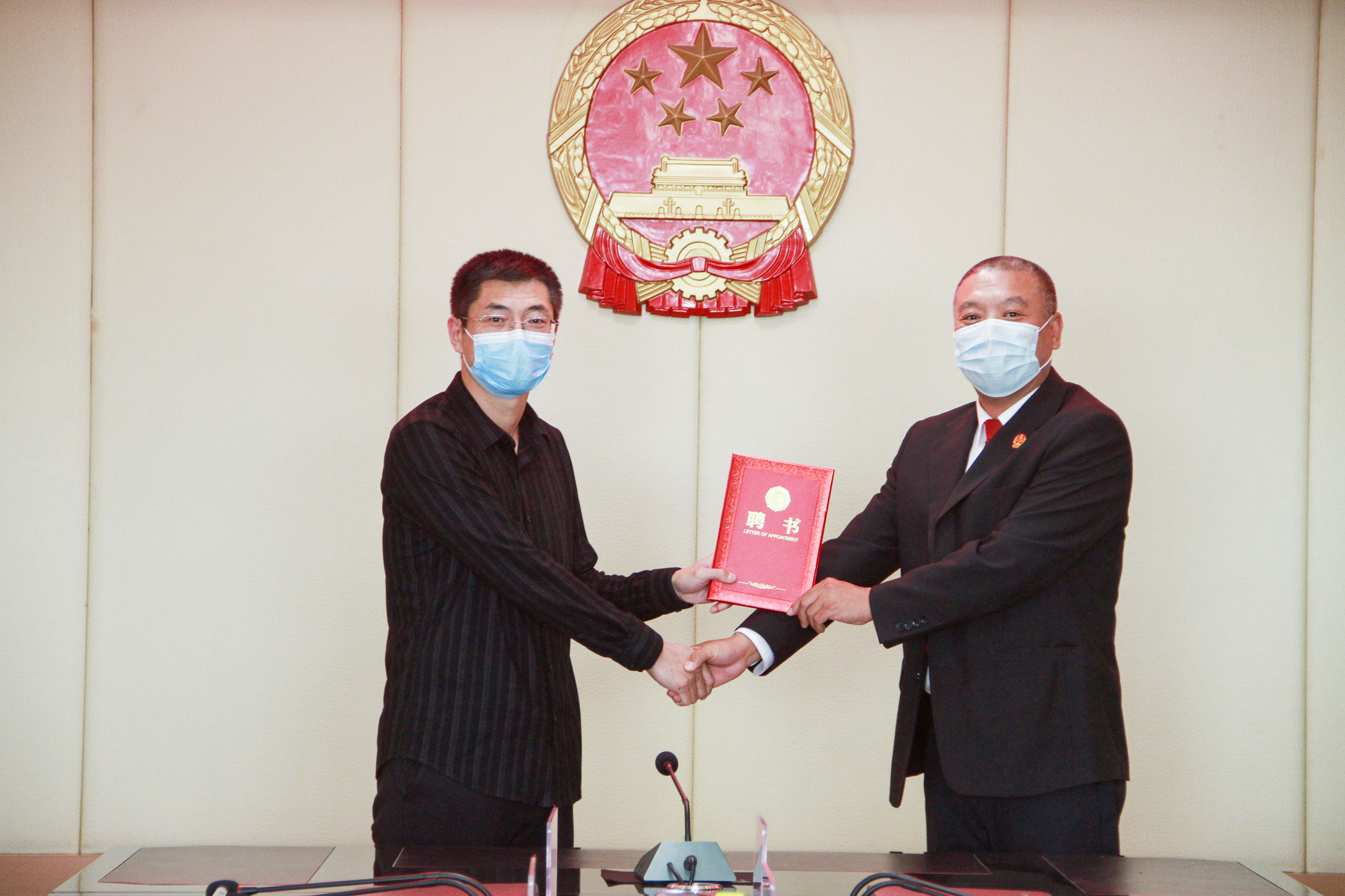 聘任仪式上,受聘法官代表与学校履行了聘任手续,所聘学校颁发了聘书。