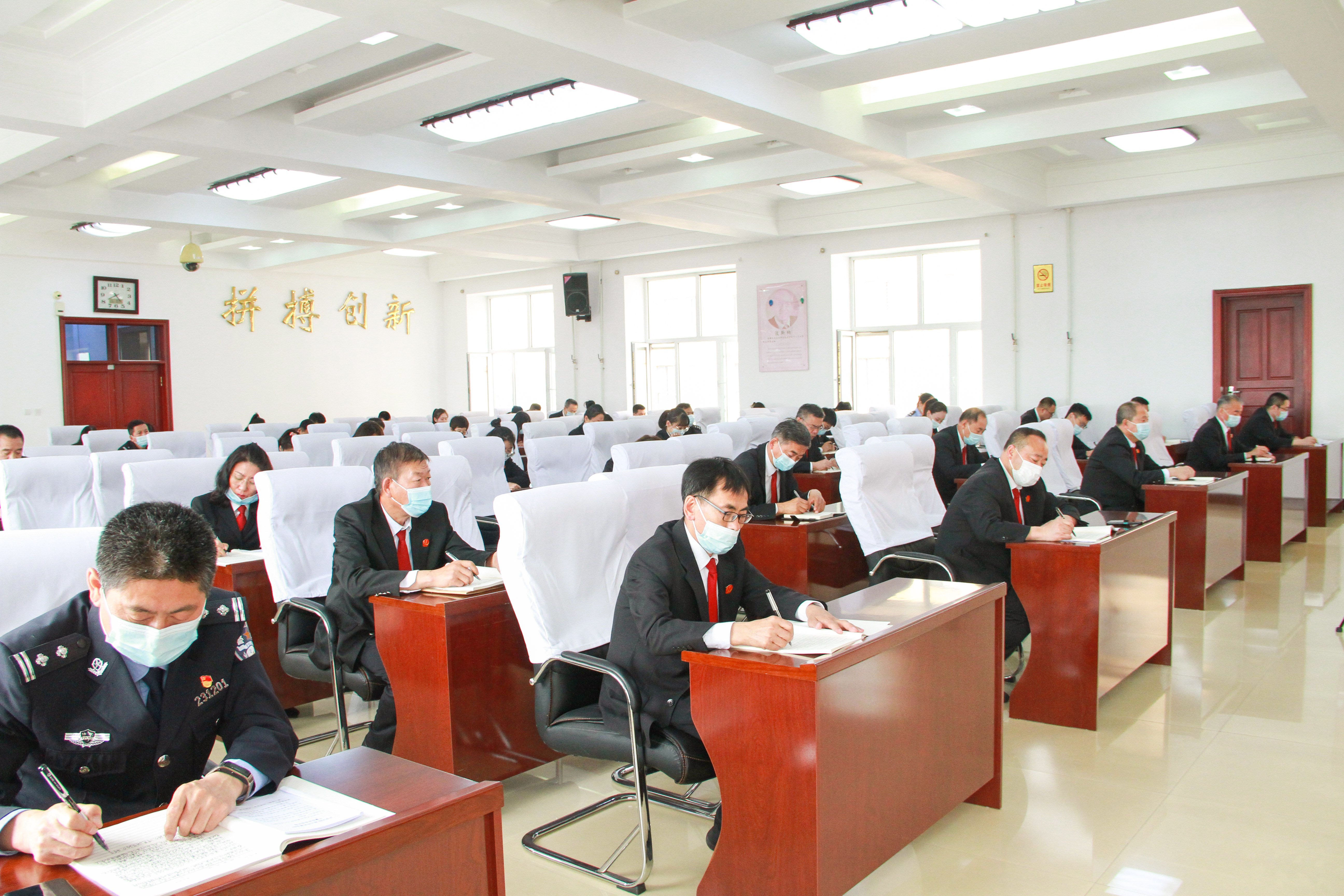 管志刚号召全院干警要以艰苦奋斗的“老法院人”为榜样,传承弘扬勇于担当、脚踏实地、艰苦奋斗的精神,以更加坚定的信念、更加昂扬的斗志、更加扎实的作风,推动庆安法院各项工作不断取得新胜利。