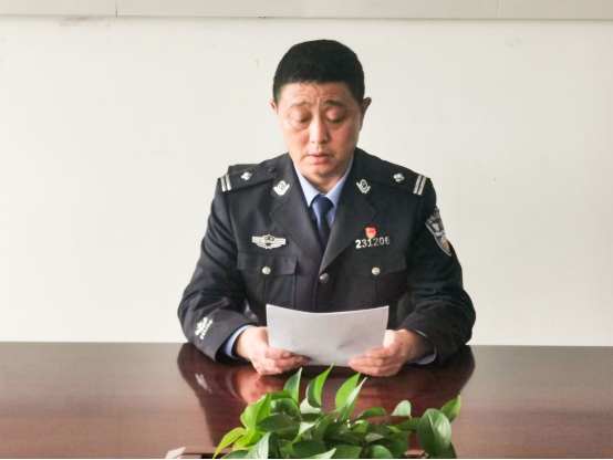 警队领导带头,与党员干警共同佩戴党徽、面向党旗,重温入党誓词,并鼓励全队党员干警牢记共产党员的第一身份,不忘初心,牢记使命,对党忠诚,为民服务。