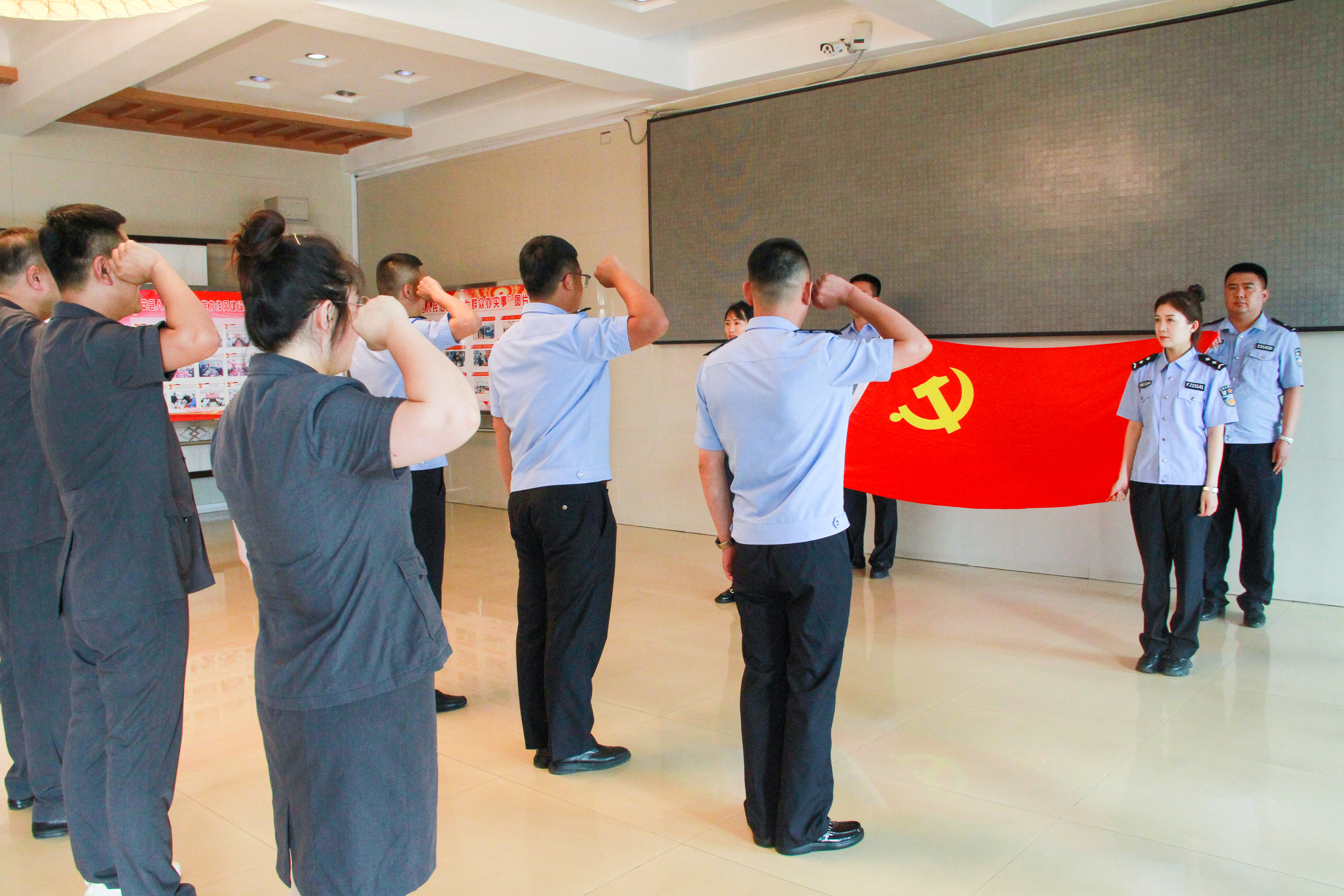 举行了新党员入党宣誓仪式,党员干警面对鲜红的党旗,庄严宣誓,许下铮铮誓言,让党员干警不忘纯粹初心,诉说党在我心中,坚定永远跟党走的信念,提醒党员干警牢记共产党员的政治责任和历史使命。