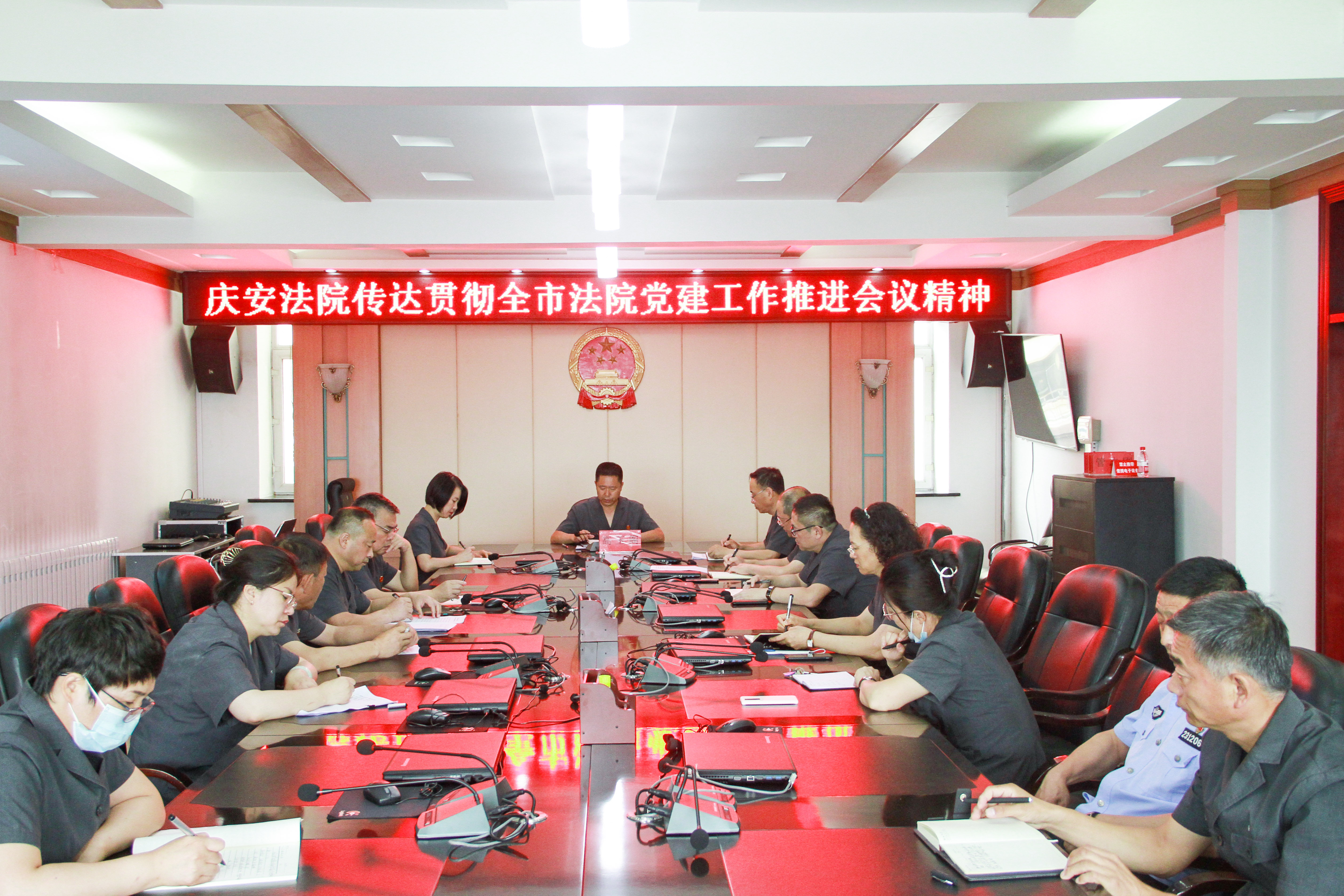7月15日,庆安县人民法院召开党组(扩大)会议,传达贯彻全市法院党建工作推进会议精神。党组书记、院长高玉阁主持会议并讲话,其他党组成员及各部门负责人参加会议。