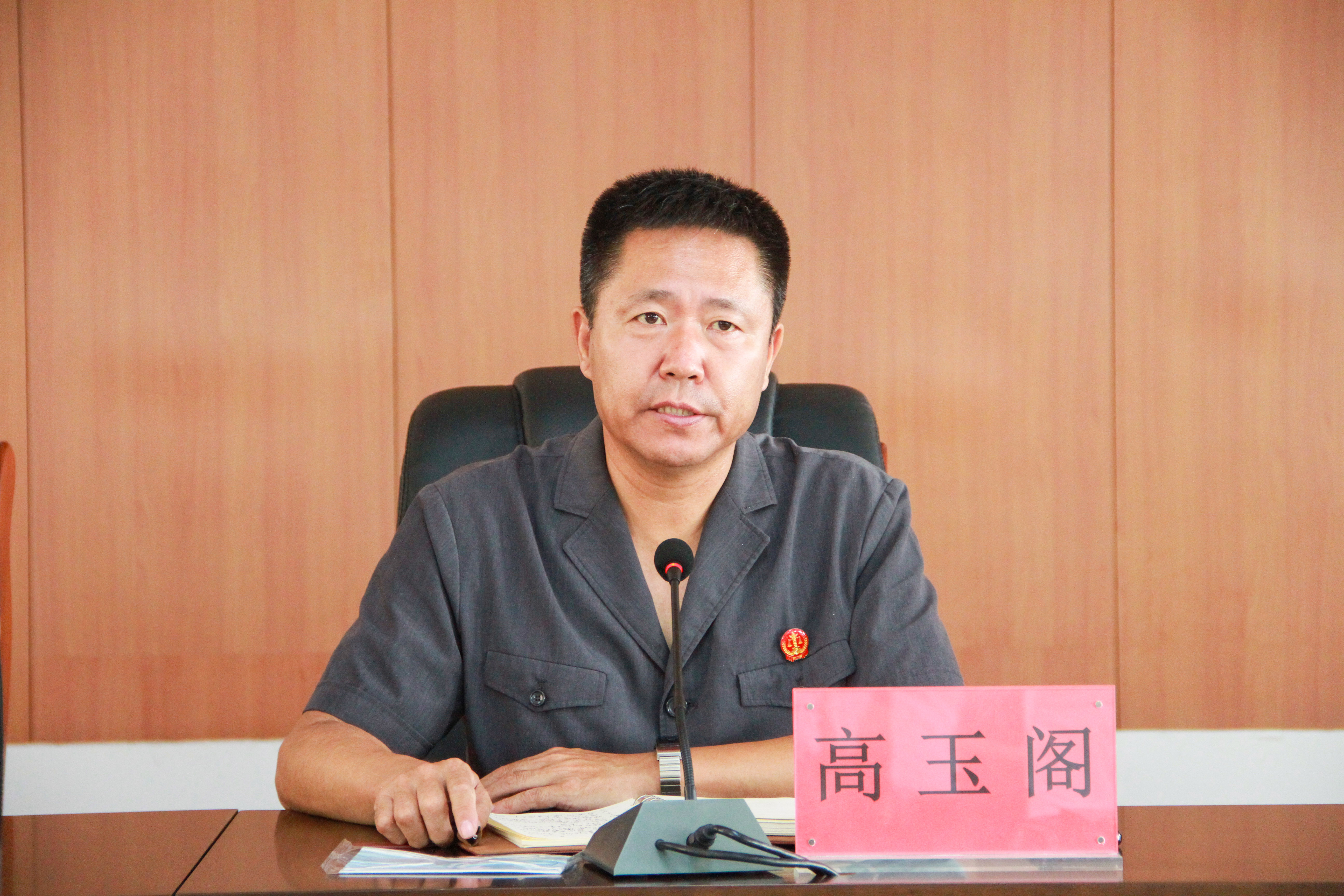 高玉阁要求,全体干警要强化政治引领,着重在扛牢政治责任上聚焦发力,始终坚持把深入学习贯彻习近平新时代中国特色社会主义思想和习近平法治思想作为首要政治任务,深刻领会“两个确立”的决定性意义,增强“四个意识”、坚定“四个自信”、做到“两个维护”,不断提高政治判断力、政治领悟力、政治执行力,始终在思想上政治上行动上同以习近平同志为核心的党中央保持高度一致。要强化理论武装,着重在提升思想境界上聚焦发力,开展全员政治轮训,坚持领导带学、个人自学、支部研学、机关评学、实践验学“五学联动”,不断提高政治觉悟、提升党性修养,进而武装头脑、指导实践、推动工作。要强化责任担当,着重在扛实主体责任上聚焦发力,院党组成员和各部门负责人要严格履行“一岗双责”,切实加强对分管部门和党员干部的监督管理,决不能把业务工作当成硬任务,把党的建设当成软指标。要敢于较真碰硬、层层传导压力,以问责的常态化倒逼全面从严治党主体责任落实。要强化问题导向,着重在加强作风建设上聚焦发力,以“能力作风建设年”为抓手,紧盯签到打卡率、上班在岗率、工作专注度、开庭准时率等小事小节,重点整治不作为、慢作为、乱作为等顽瘴痼疾,不断推动作风建设常态化取得新成效。要强化从严治警,着重在打造法院铁军上聚焦发力,坚持把纪律和规矩挺在前面,把握运用好监督执纪“四种形态”,保持惩治腐败力度不减、尺度不松、节奏不变。紧盯“关键少数”、关键环节、重点岗位,坚持无禁区、全覆盖、零容忍,严把审执规程,严格精准执行,全面加强廉政风险防控,持续深化不敢腐、不能腐、不想腐一体推进。