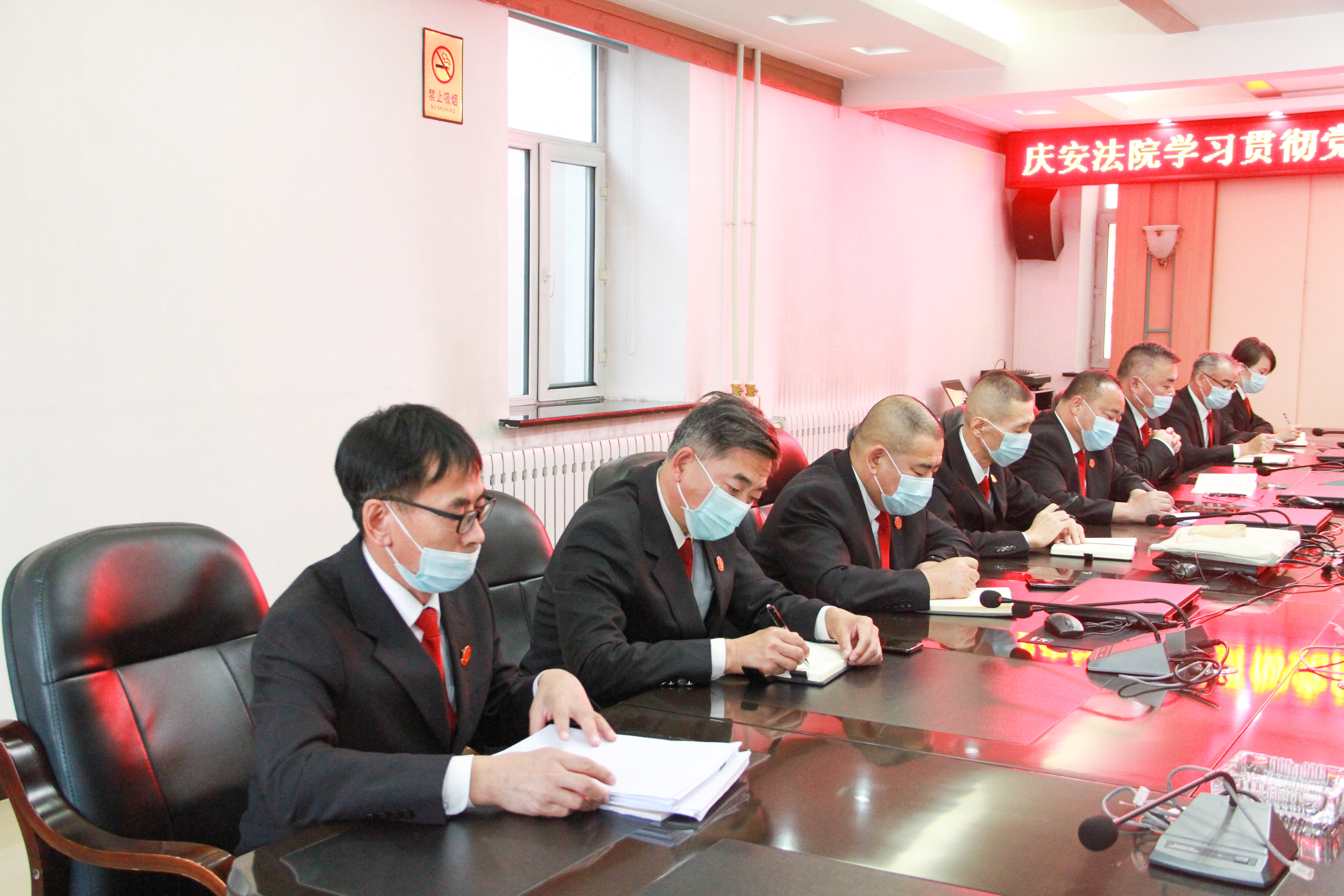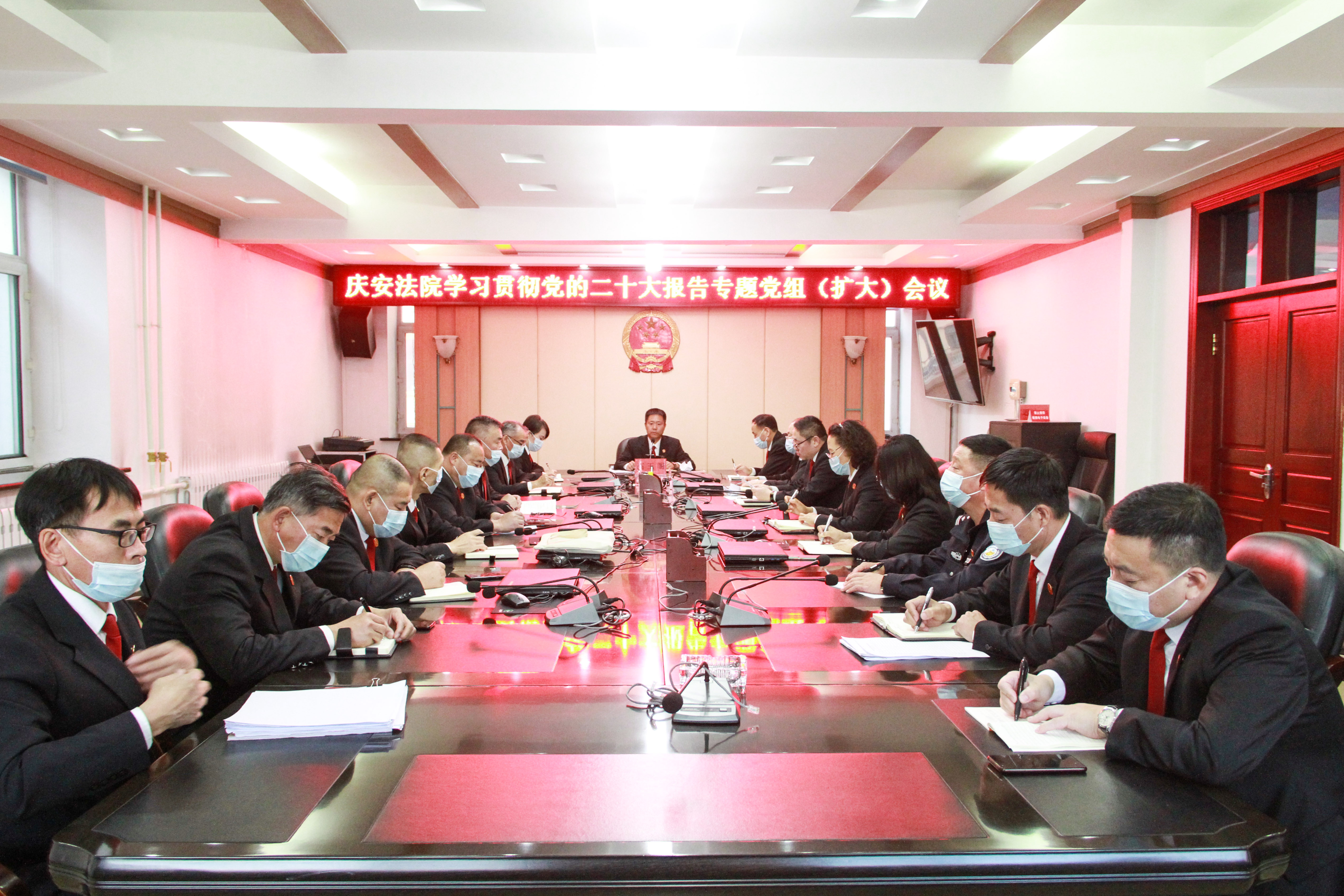 10月19日下午,庆安县人民法院召开学习贯彻党的二十大报告党组(扩大)会议,专题学习习近平总书记在中国共产党第二十次全国代表大会开幕会上的报告精神。党组书记、院长高玉阁主持学习并讲话,全体班子成员、各部门负责人参加学习。