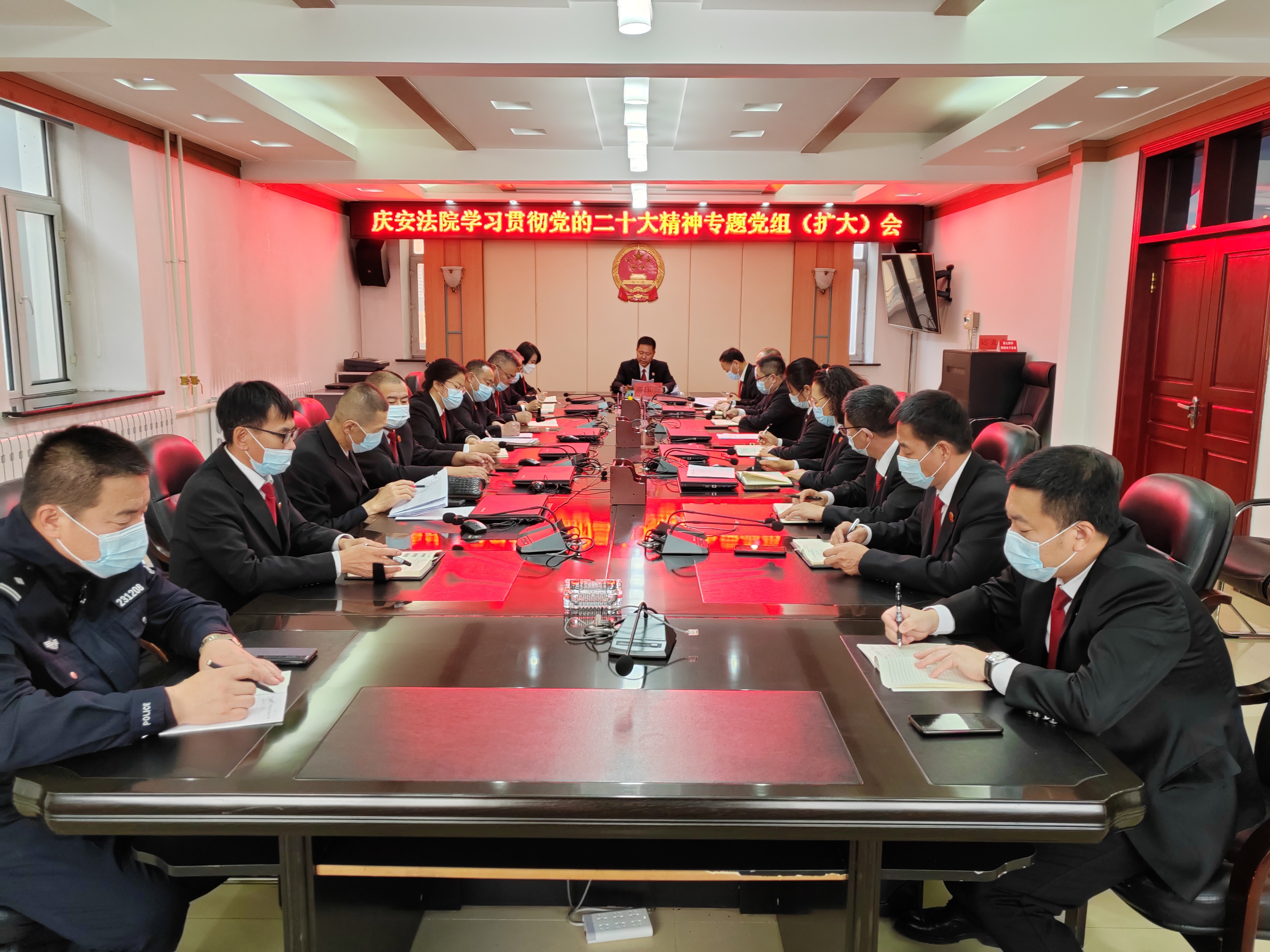 11月14日下午,庆安法院召开学习贯彻党的二十大精神专题党组(扩大)会,传达落实了省委十三届二次全会关于学习宣传贯彻党的二十大精神的部署要求。党组书记、院长高玉阁主持会议并讲话,院党组成员、各部门负责人参加会议。