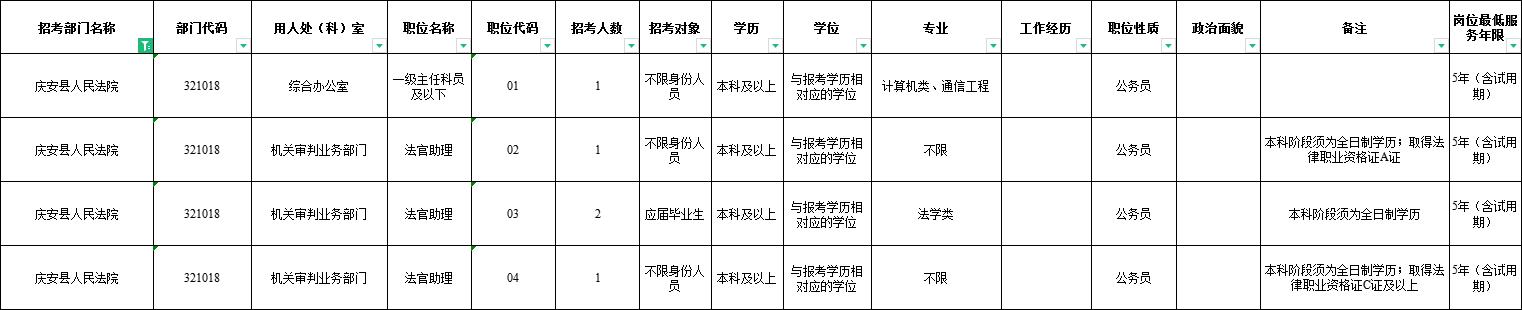 庆安县人民法院招聘岗位