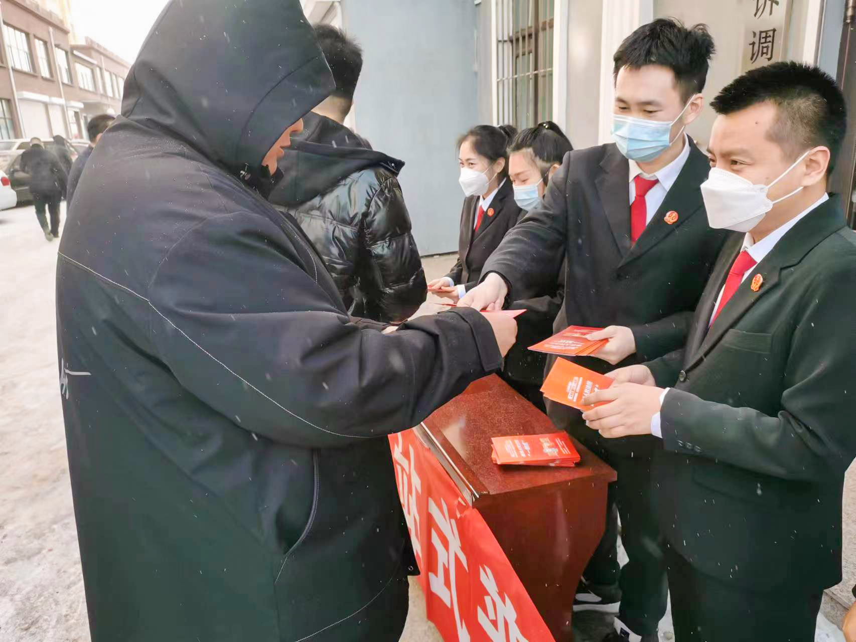 为深入贯彻落实党的二十大关于“深入开展法治宣传教育,增强全民法治观念”部署要求,做好“一站式”普法宣传工作,2月8日上午,庆安县人民法院开展“一站式普法宣传”活动,围绕非诉解纷、法律咨询、跨域立案、网上立案等内容进行宣传。