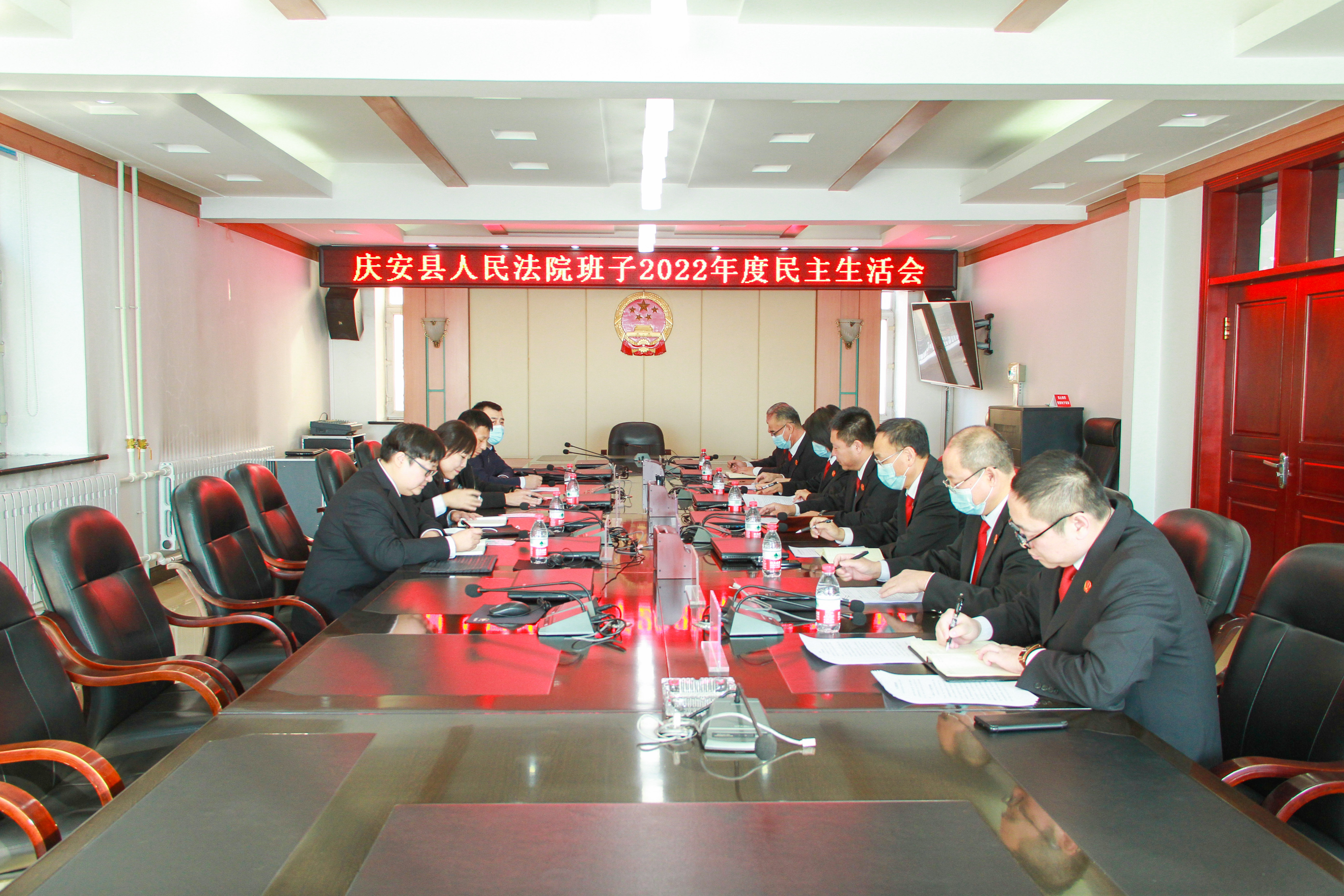 按照市中院和县委要求,2月14日,庆安县人民法院领导班子召开2022年度民主生活会。庆安法院党组书记、院长高玉阁主持会议并作总结讲话。市中院机关党委专职副书记、三级调研员孙立梅、市中院宣传科副科长曲薇薇和县纪委监委驻农业农村局纪检组长齐明君、县委组织部干部组组长王洪亮列席会议。法院班子成员参加会议。