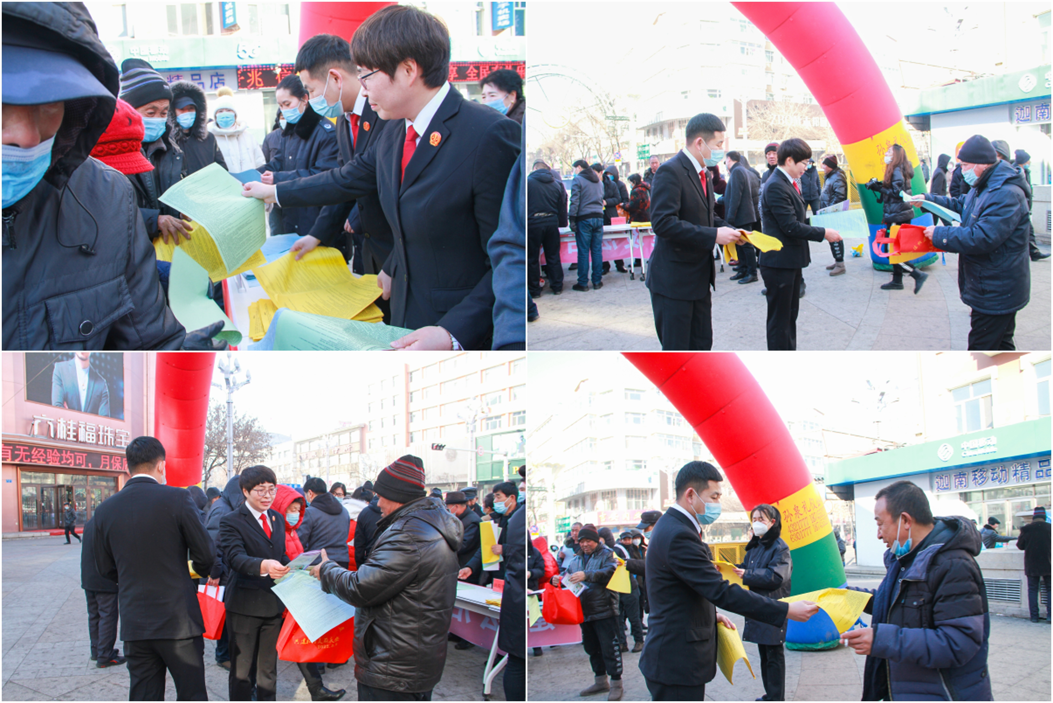 在“三八”国际劳动妇女节来临之际,为关爱妇女群体,保障妇女权益,提高妇女法律维权意识,促进社会和谐发展,3月3日,庆安县人民法院组织法官在商业街繁华路段开展了“维护妇女儿童权益 共建文明和谐家园”普法宣传活动。