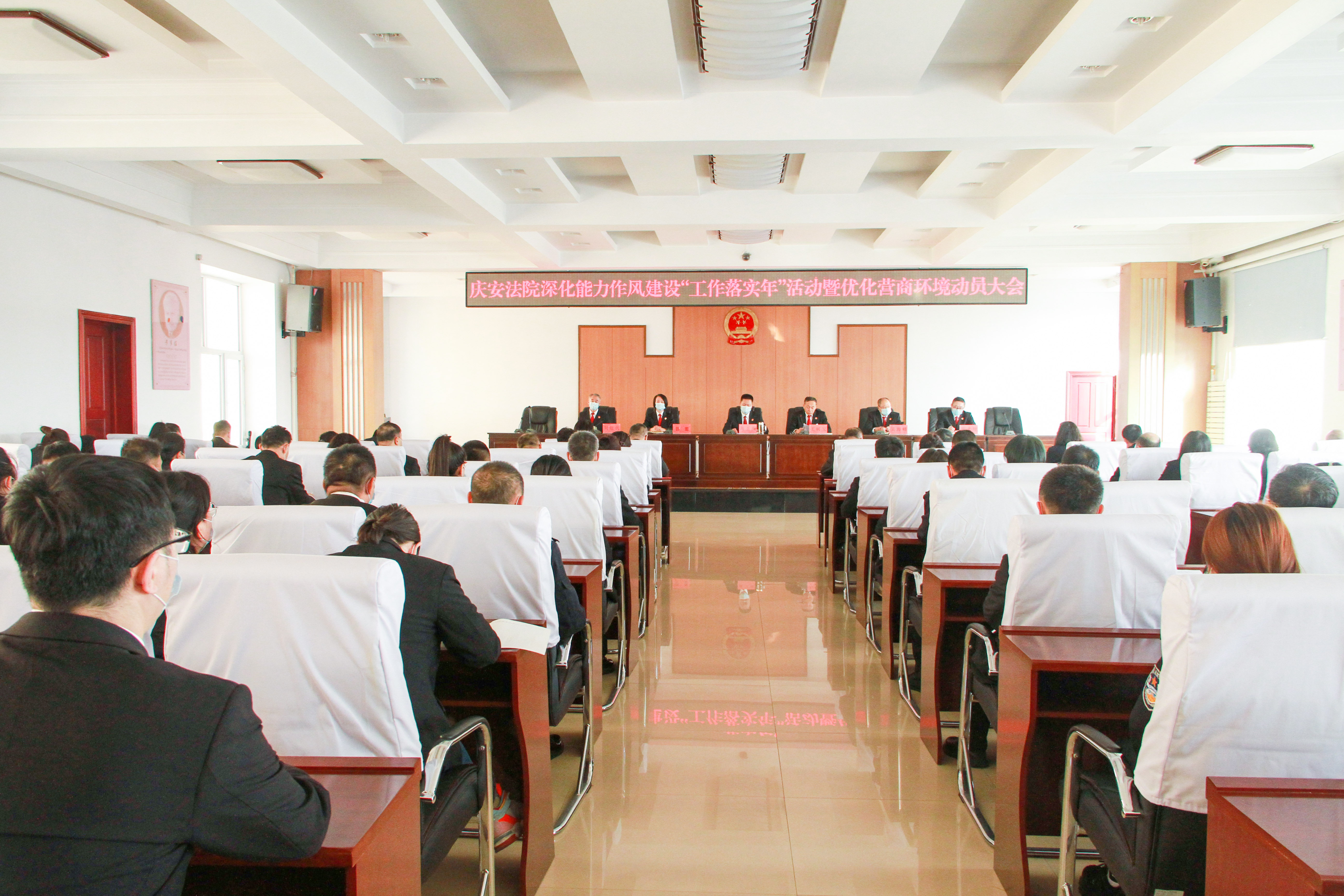 3月14日,庆安县人民法院召开深化能力作风建设“工作落实年”活动暨优化营商环境动员大会,传达全省、全市法院深化能力作风建设“工作落实年”活动暨优化营商环境动员大会会议精神,动员部署本院深化能力作风建设“工作落实年”活动和优化营商环境工作。党组书记、院长高玉阁出席会议并作动员讲话,全体干警参加会议。