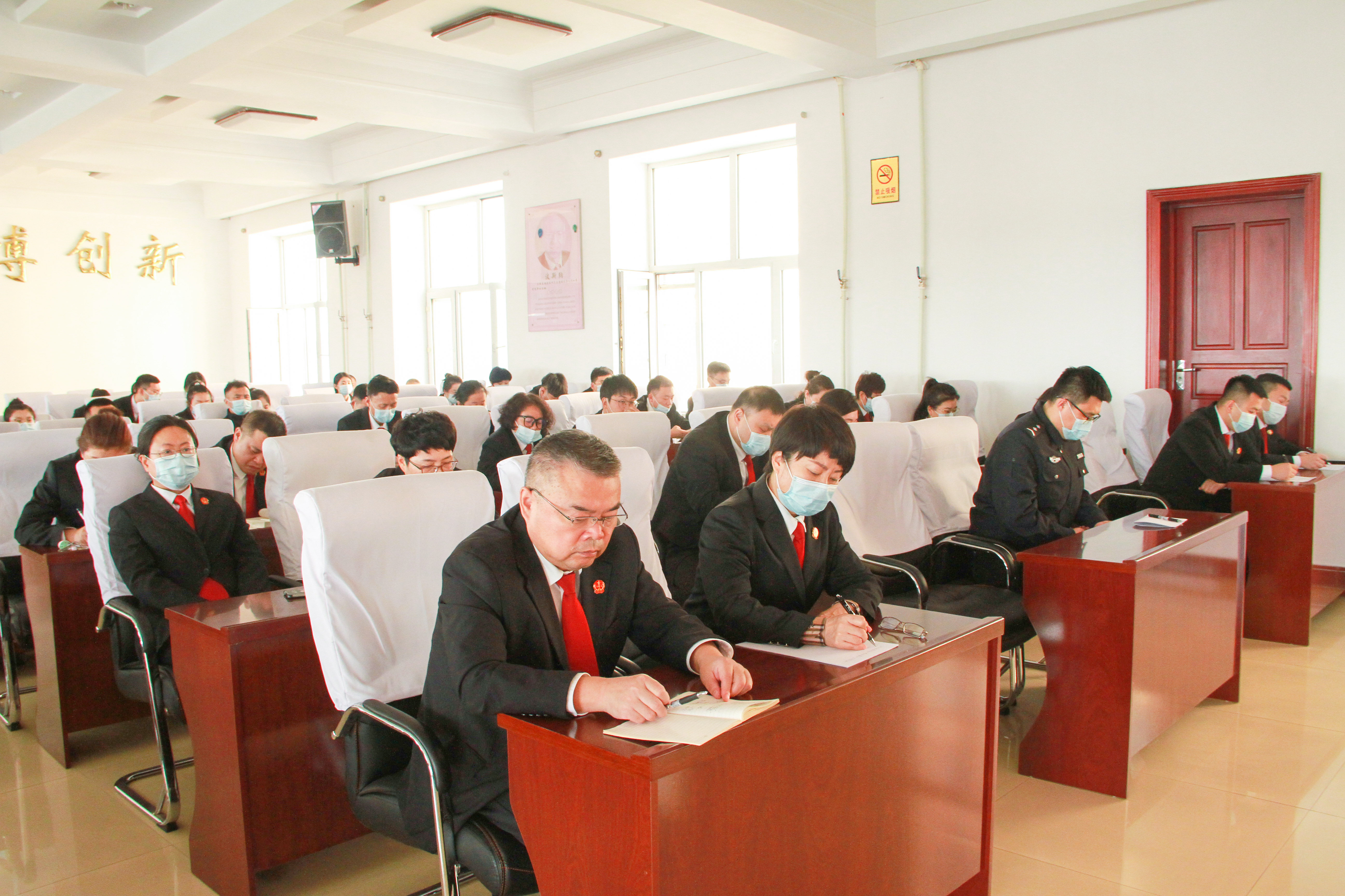 党组成员、副院长王树文主持会议并作会议总结,党组成员、副院长郭蕾同志传达省市法院会议精神。