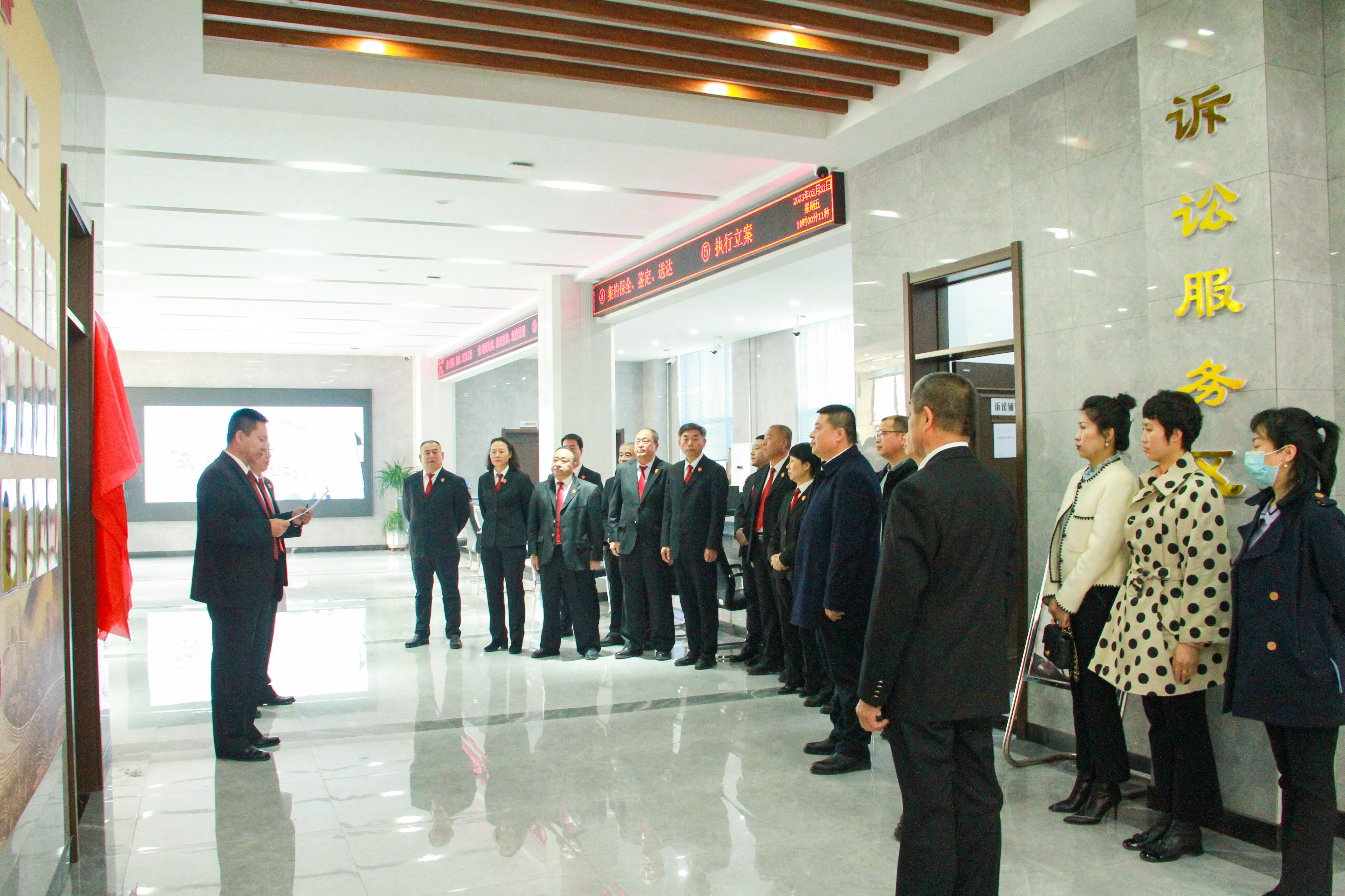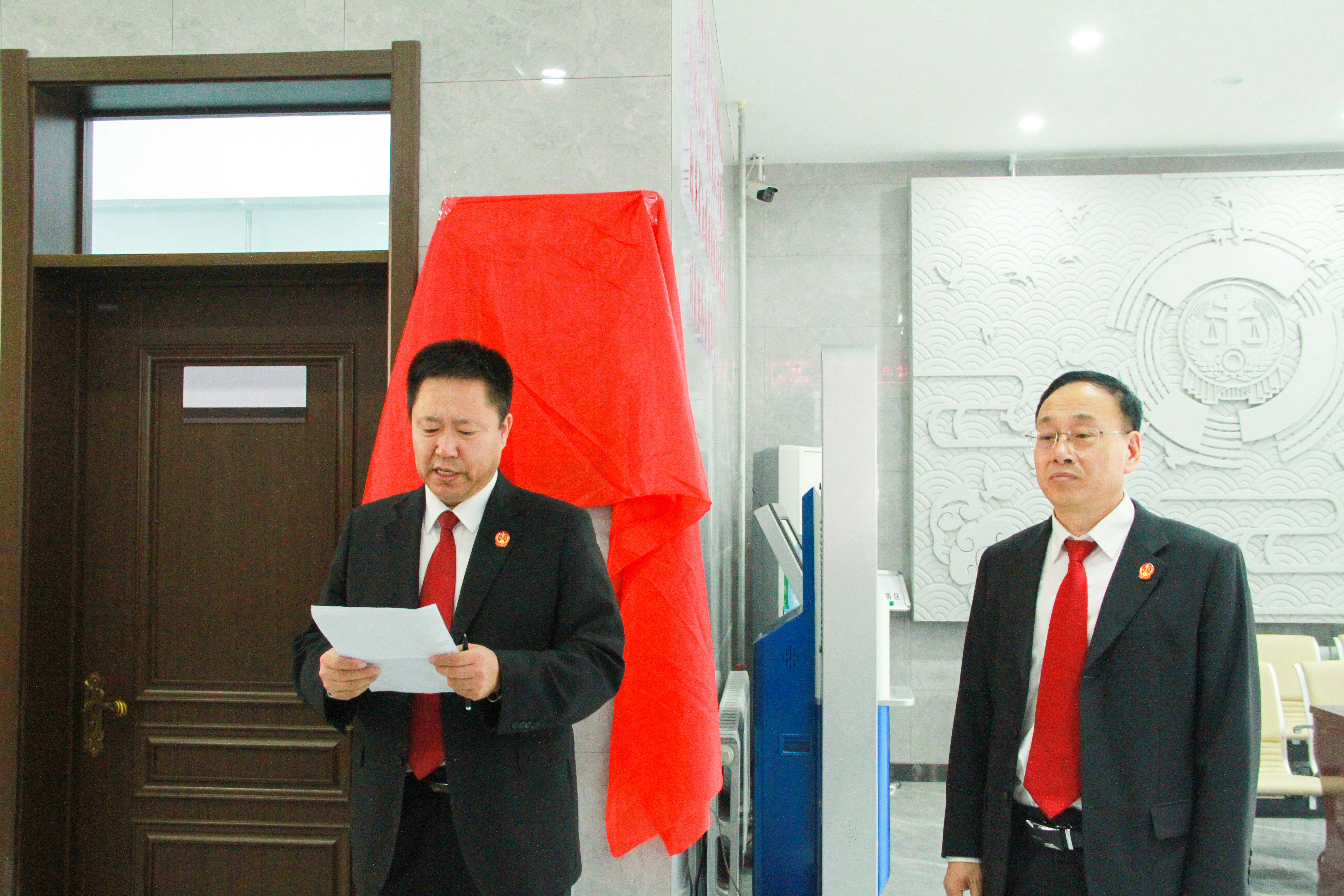 庆安法院党组成员、副院长王树文主持揭牌仪式,党组书记、院长高玉阁讲话。