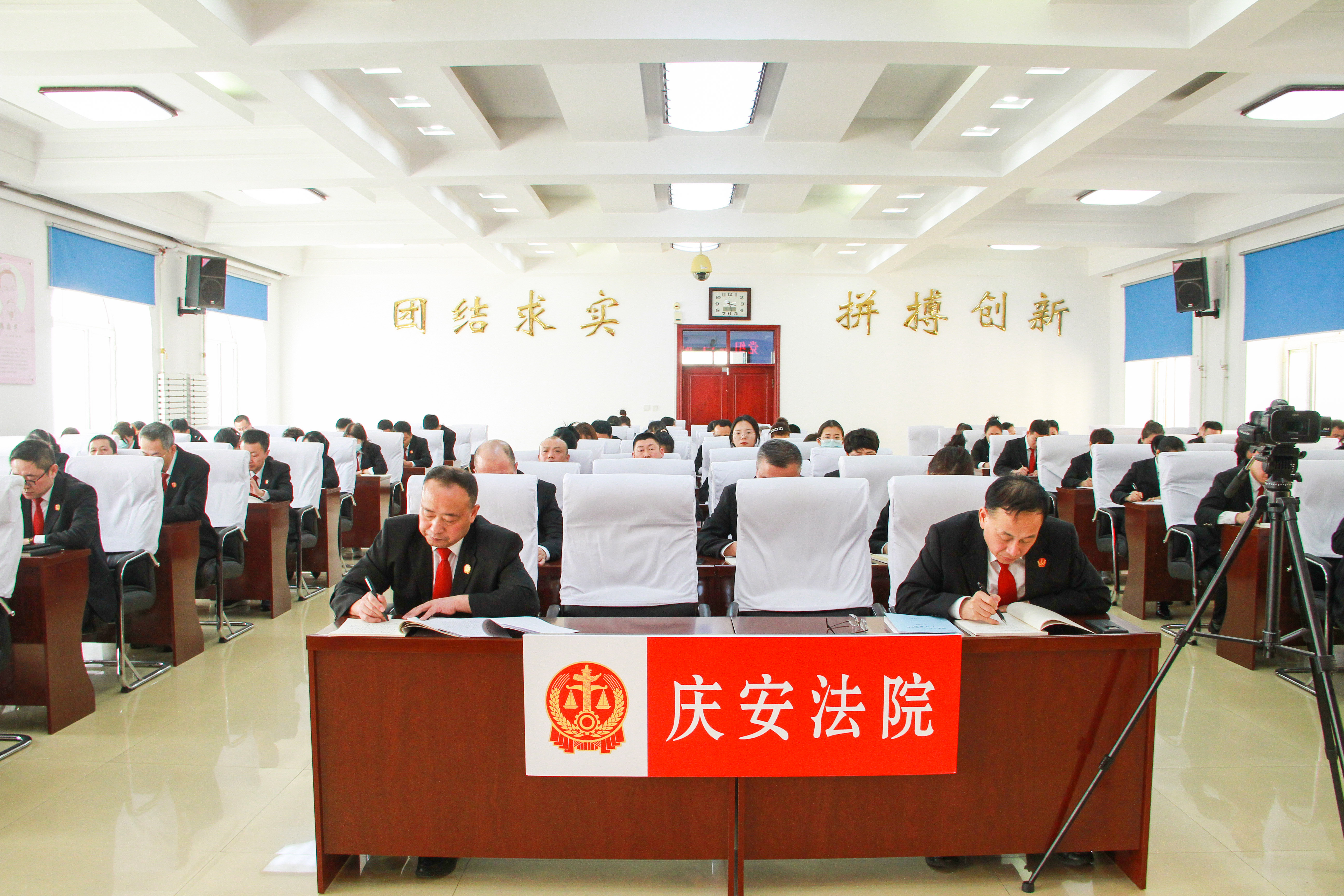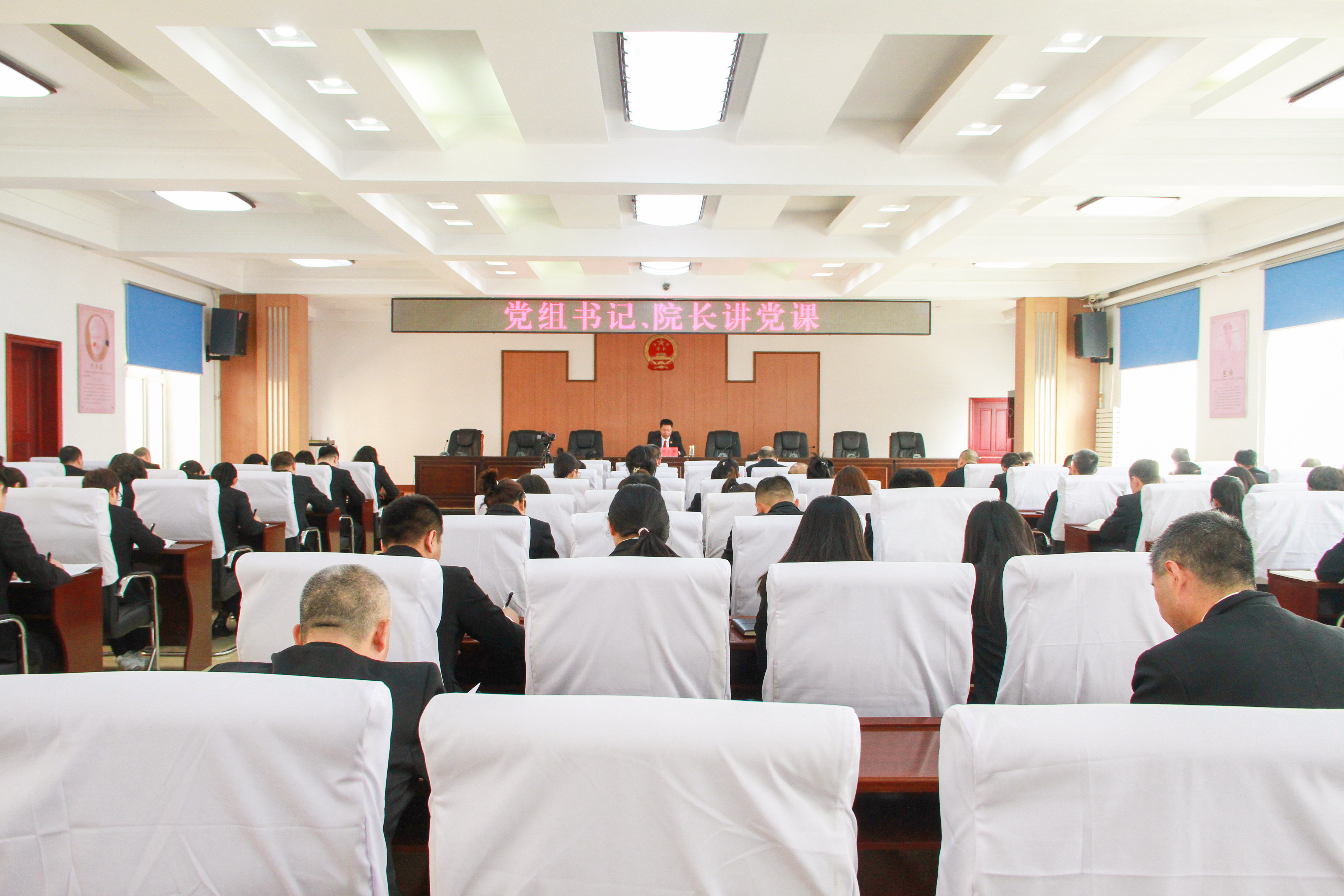 4月20日下午,庆安县人民法院党组书记、院长高玉阁以“全面学习贯彻党的二十大精神在维护公平正义新征程上展现司法新作为”为主题,为全院干警上了一堂专题党课。