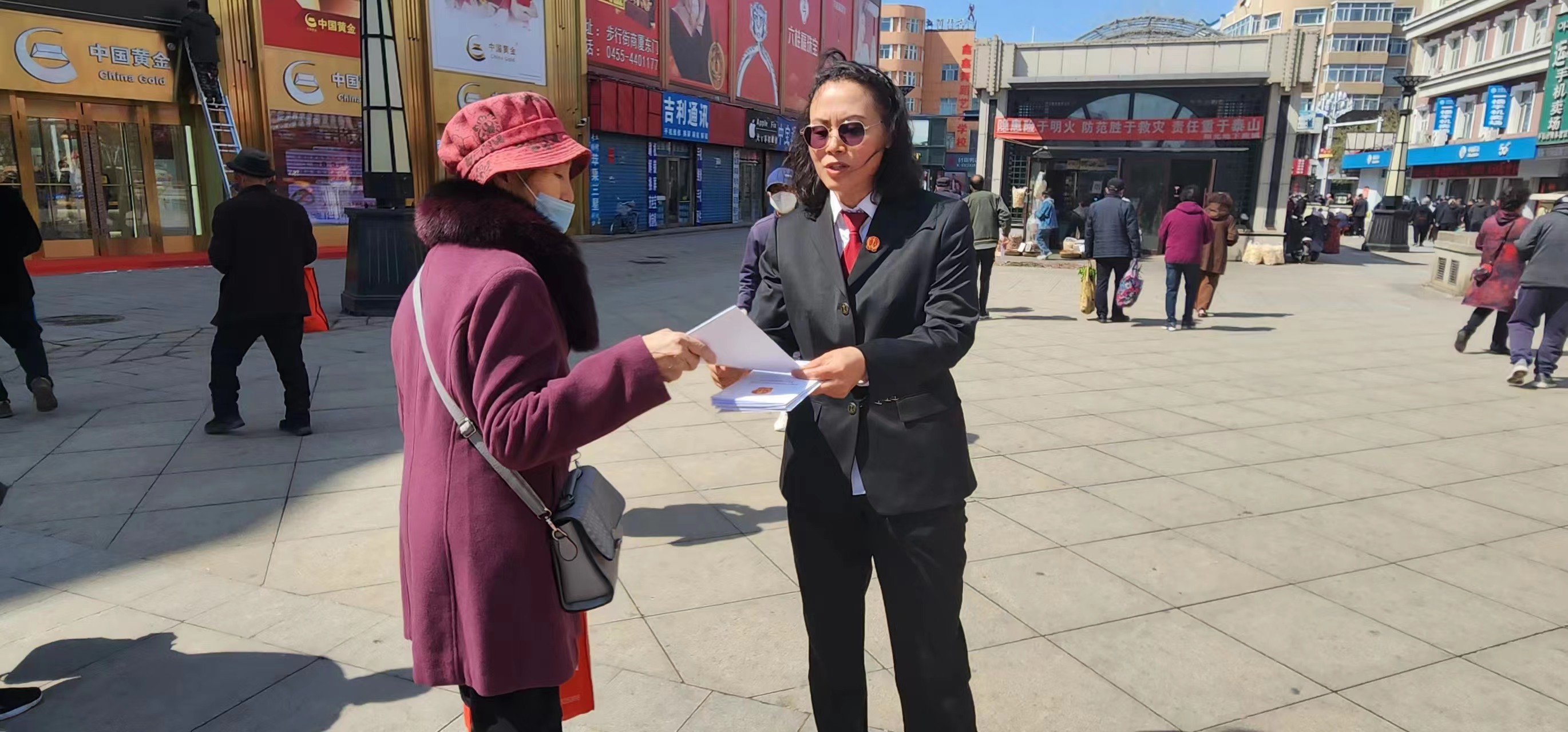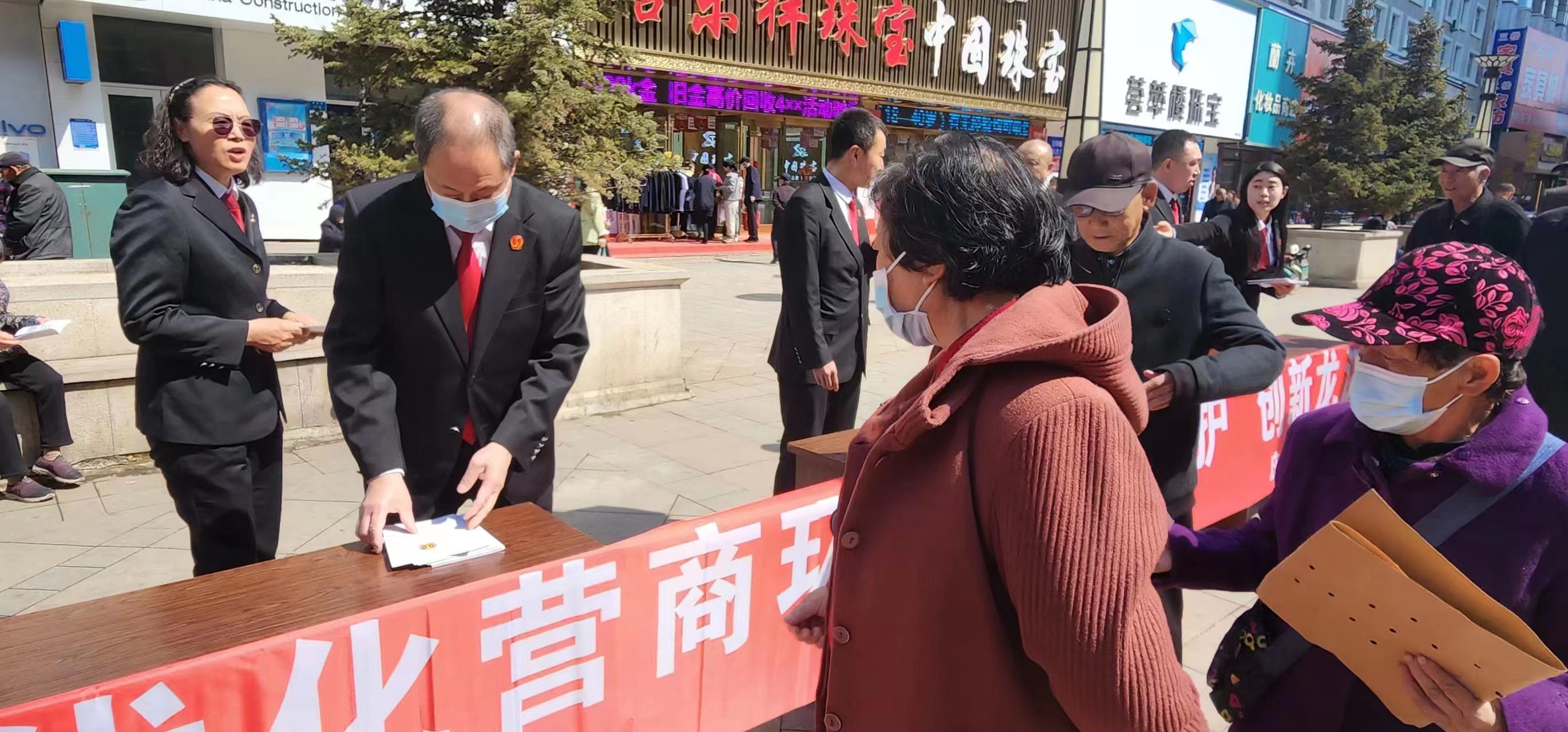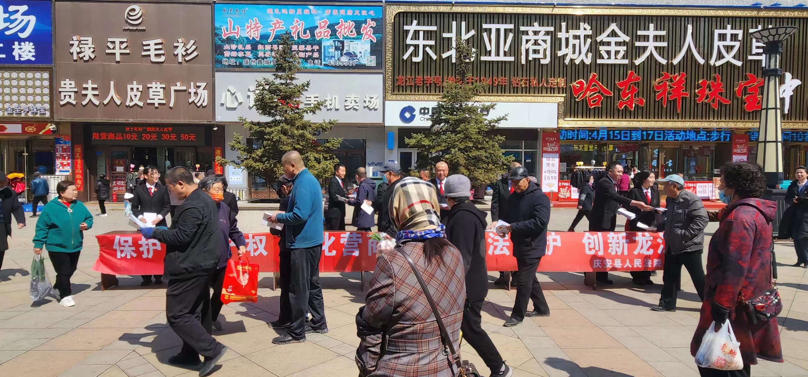 4月26日,在第23个世界知识产权日,庆安县人民法院党组成员乔永艳、审判委员会专职委员吴海峰带领干警走上街头、走进市场,开展以“保护知识产权 优化营商环境 司法守护 创新龙江”为主题的宣传活动。