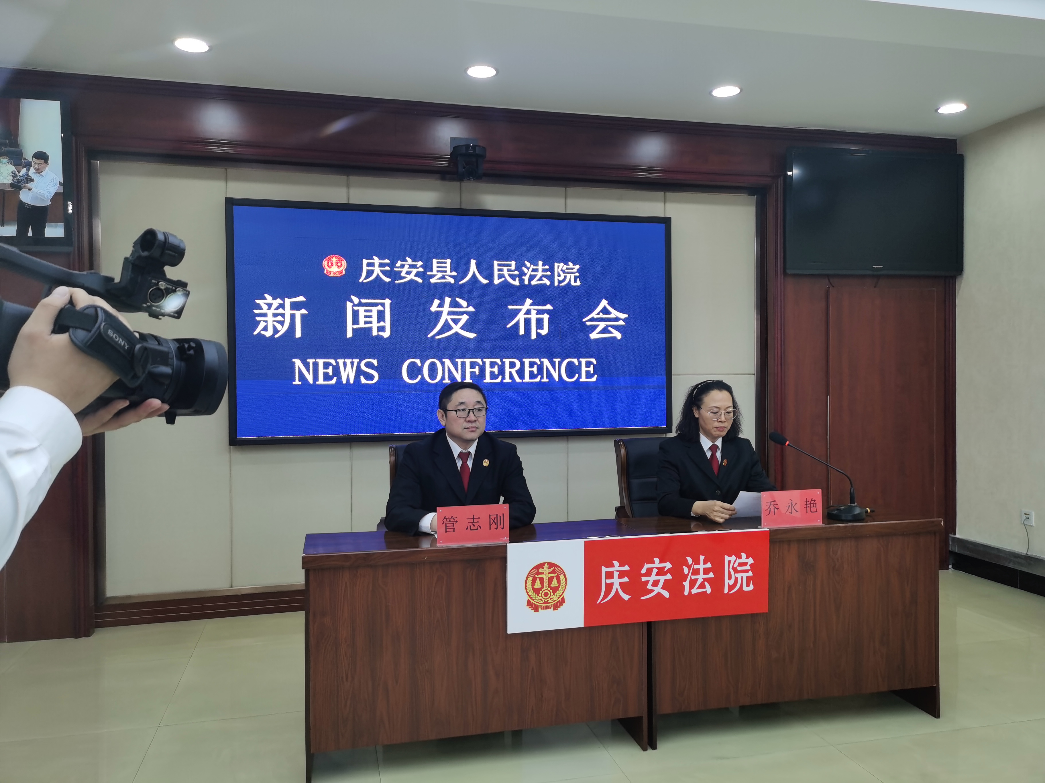 4月25日,庆安县人民法院召开知识产权宣传周新闻发布会,院党组成员乔永艳主旨发布,并回答记者问,党组成员、政治部主任管志刚主持会议,邀请相关媒体记者、企业代表参加了会议。