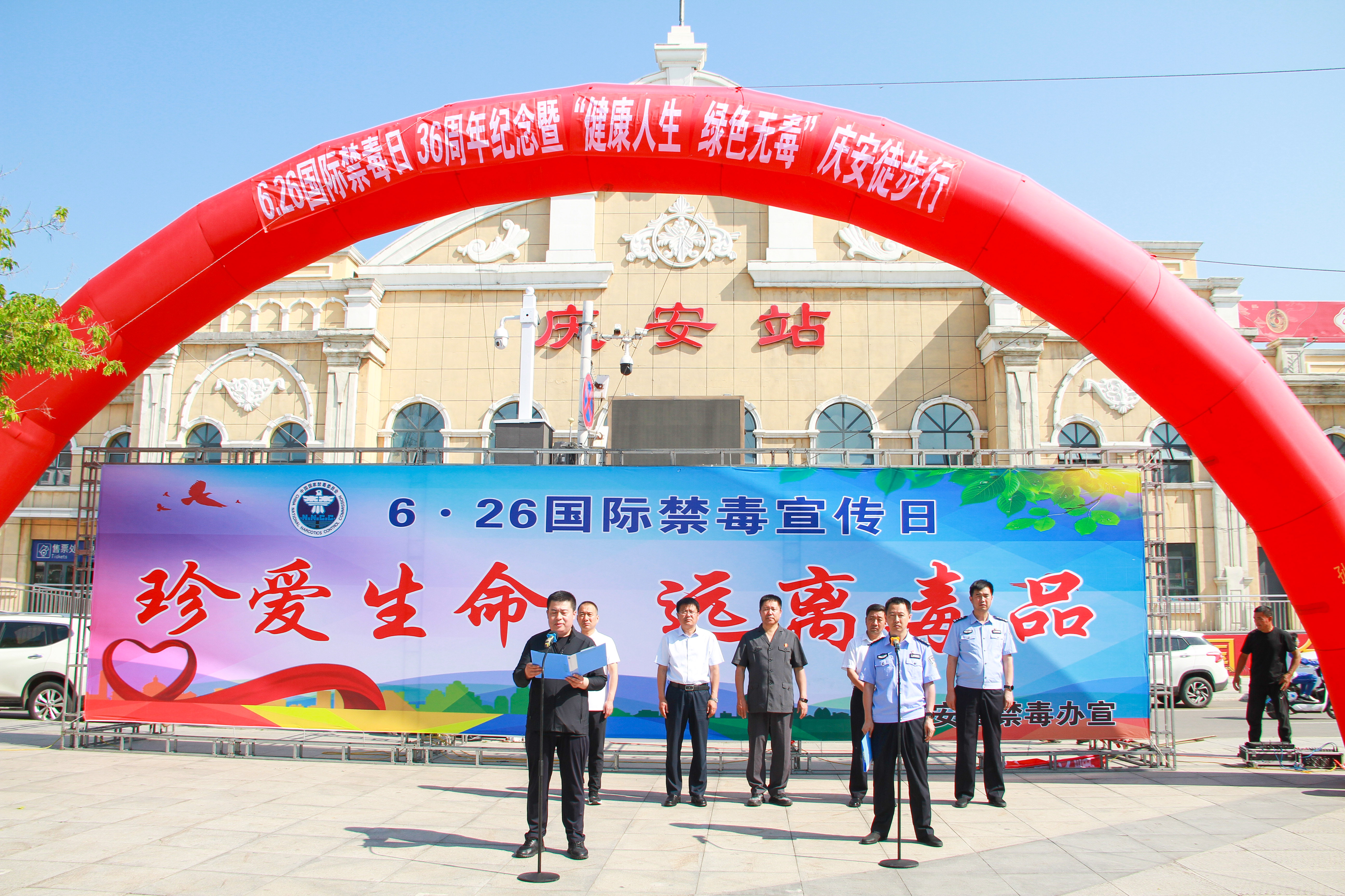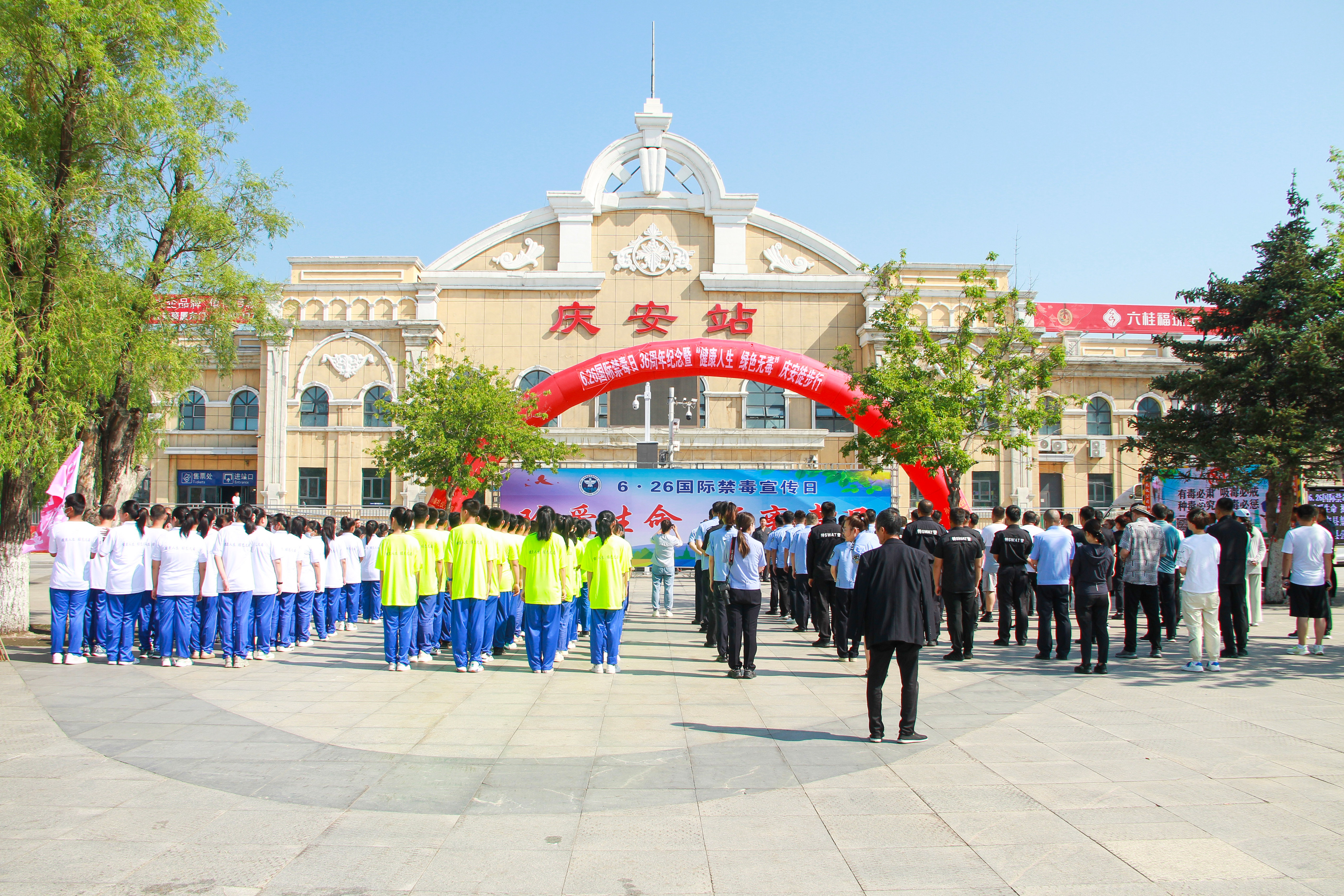6月26日上午,在第36个国际禁毒日来临之际,庆安县人民法院党组书记、院长高玉阁及法院干警代表在县火车站广场参加了6.26国际禁毒日36周年纪念暨“健康人生 绿色无毒”庆安徒步行活动。