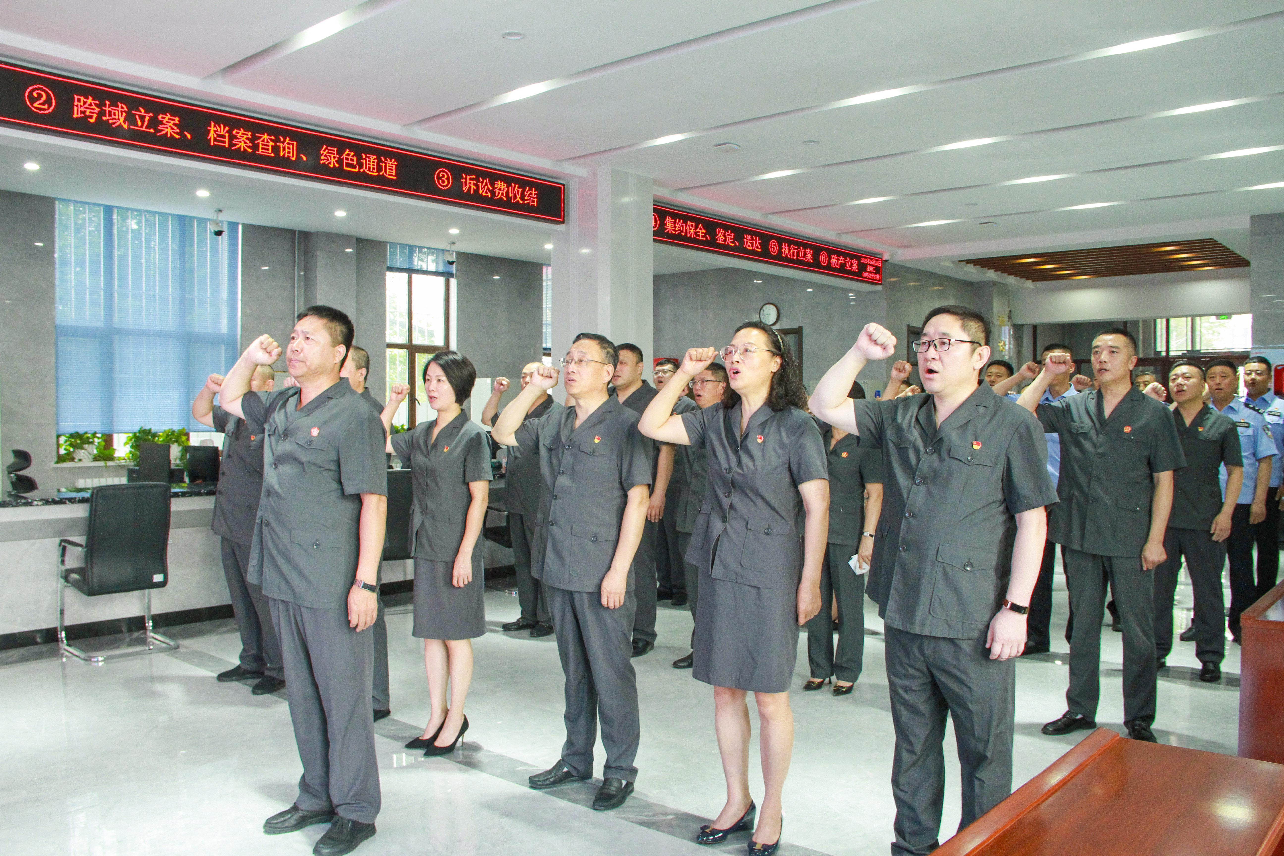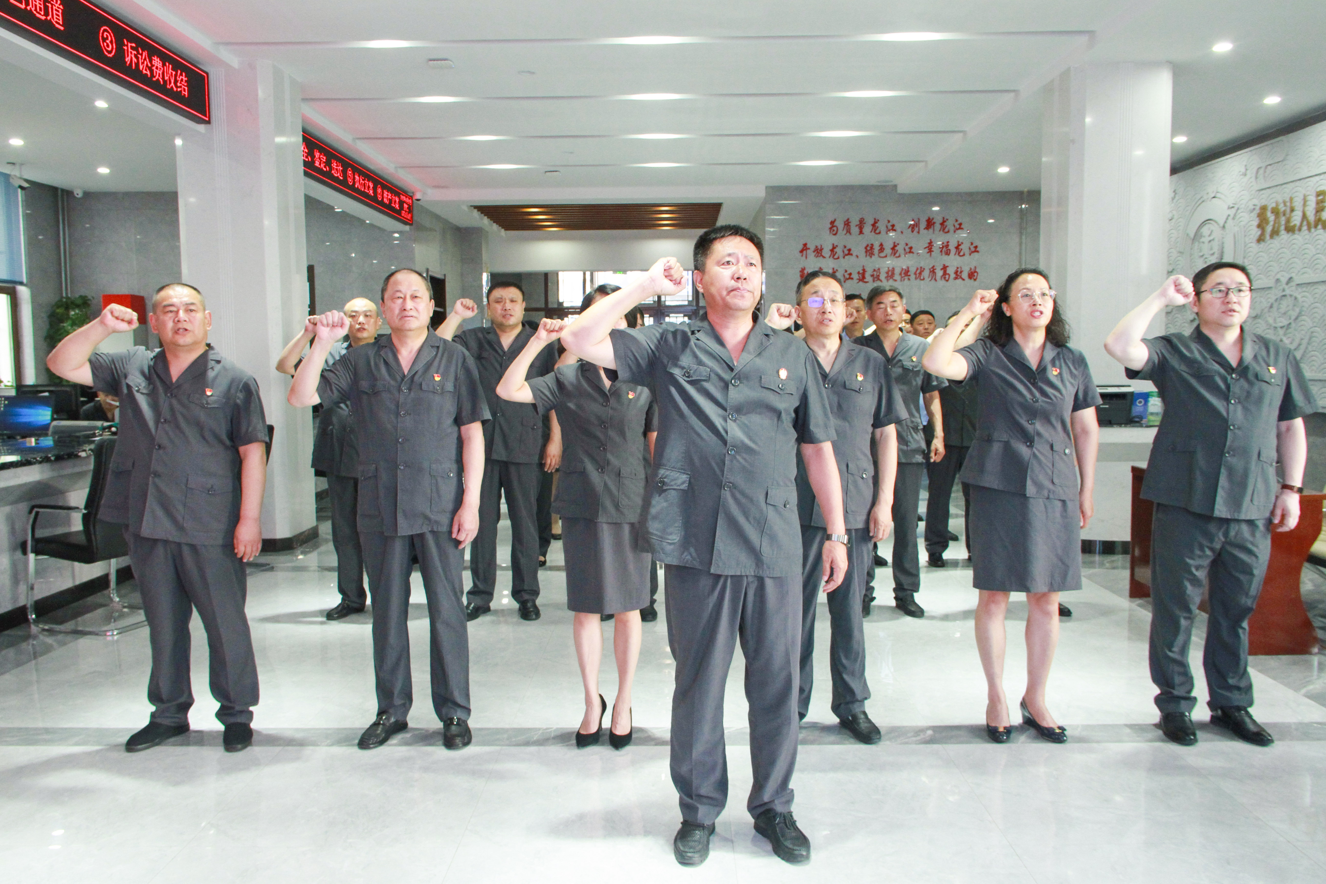 6月27日上午,为庆祝建党102周年,庆安县人民法院组织开展“重温入党誓词”活动,党组书记、院长高玉阁领誓,全体党员参加活动。