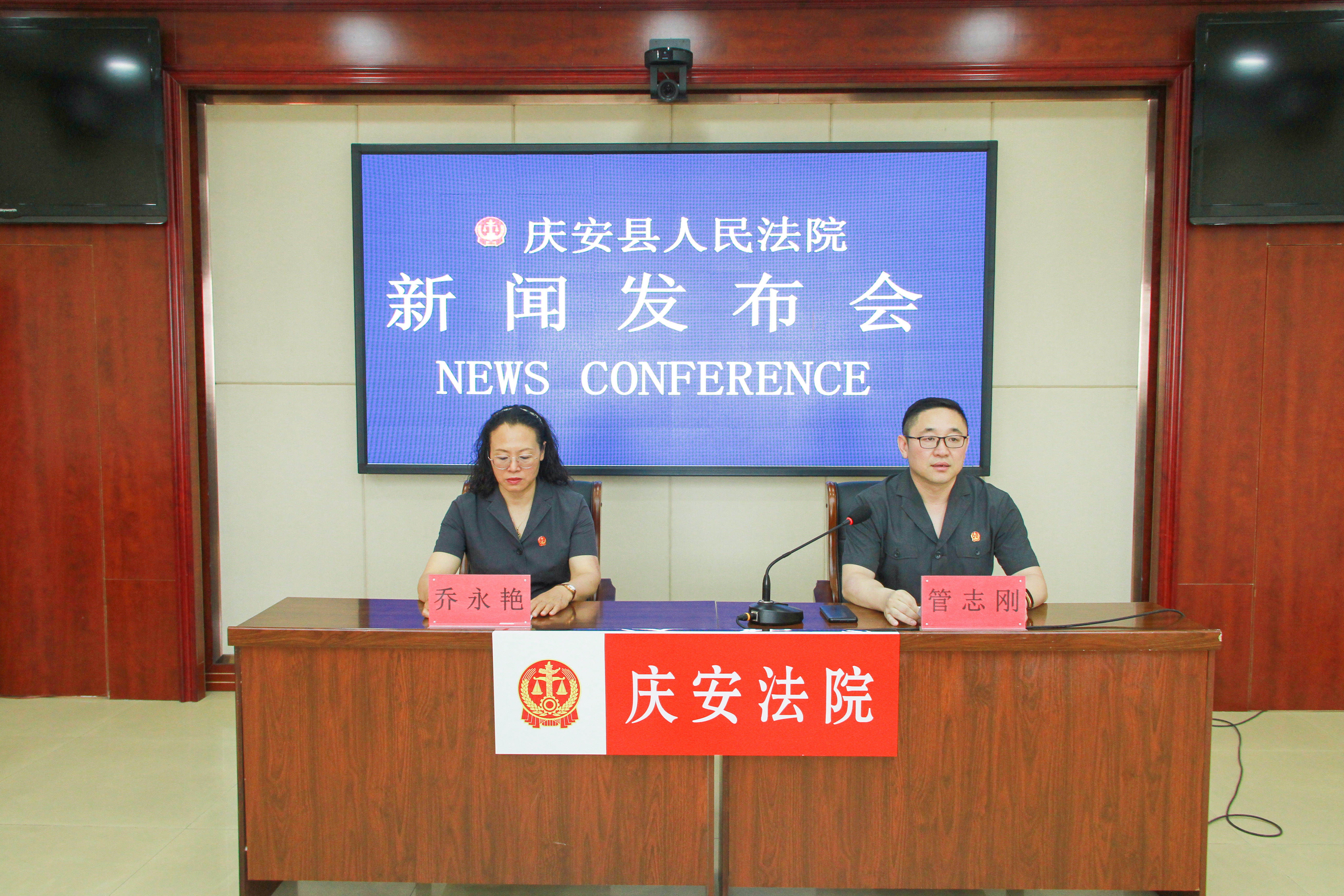 7月11日,庆安县人民法院召开诉讼服务工作新闻发布会,党组成员、副院长乔永艳作主旨发布,并回答记者提问,党组成员、政治部主任管志刚主持会议,相关媒体记者参加了会议。