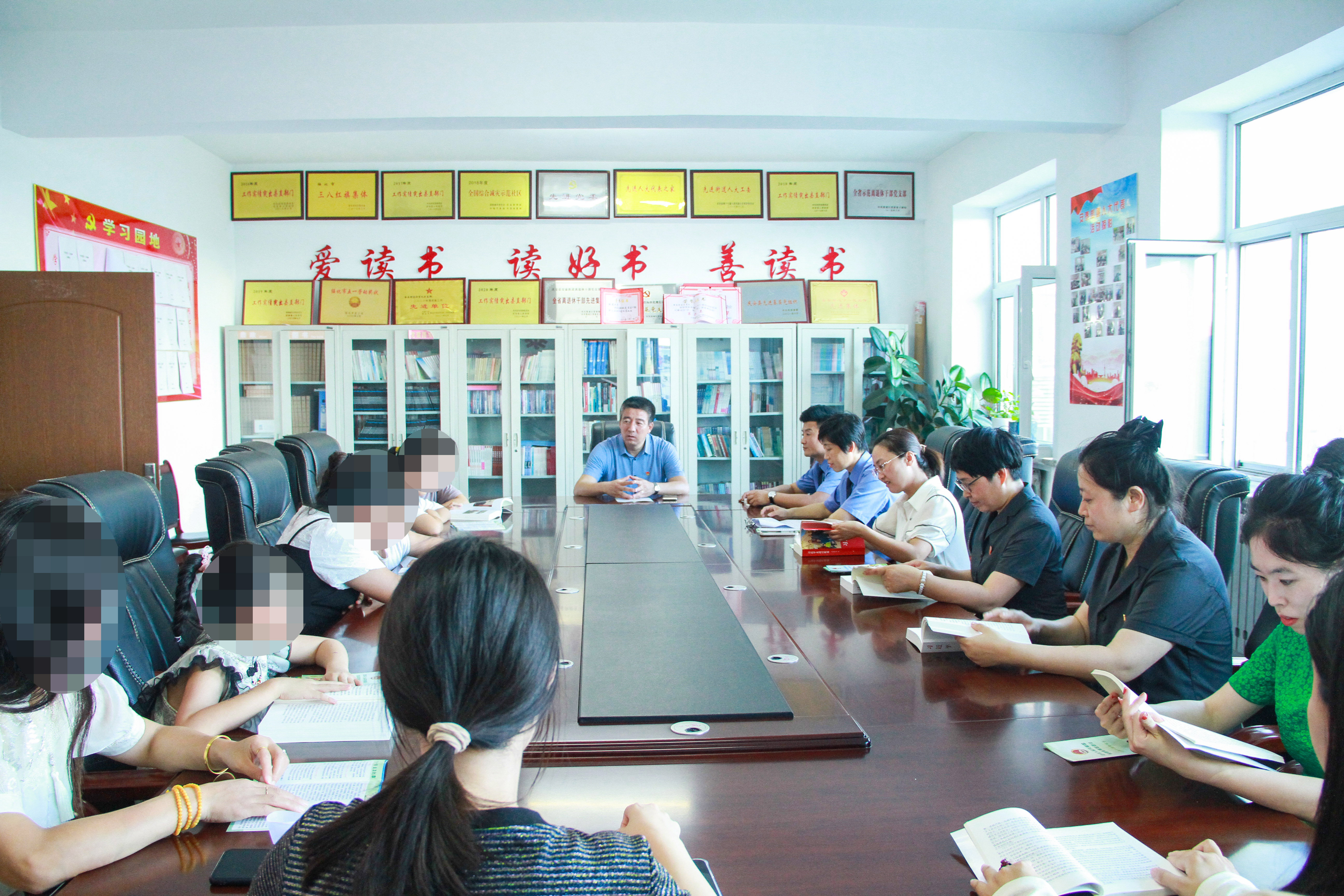 活动现场,刑事审判庭副庭长孟祥艳为贫困儿童送去了书包、水彩笔等学习用品,与家长和孩子们一起阅读,向家长们讲解了亲子阅读的好处,一起讨论读书心得。同时向少年儿童们宣讲了《中华人民共和国未成年人保护法》《中华人民共和国家庭教育促进法》等法宣图书小册子,引导少年儿童学习如何保护自己,如何维护自身合法权益,从而提升法治意识和自我保护能力,帮助他们从小构建积极健康的心理品质。寓教于乐的普法方式深受少年儿童们的喜爱。