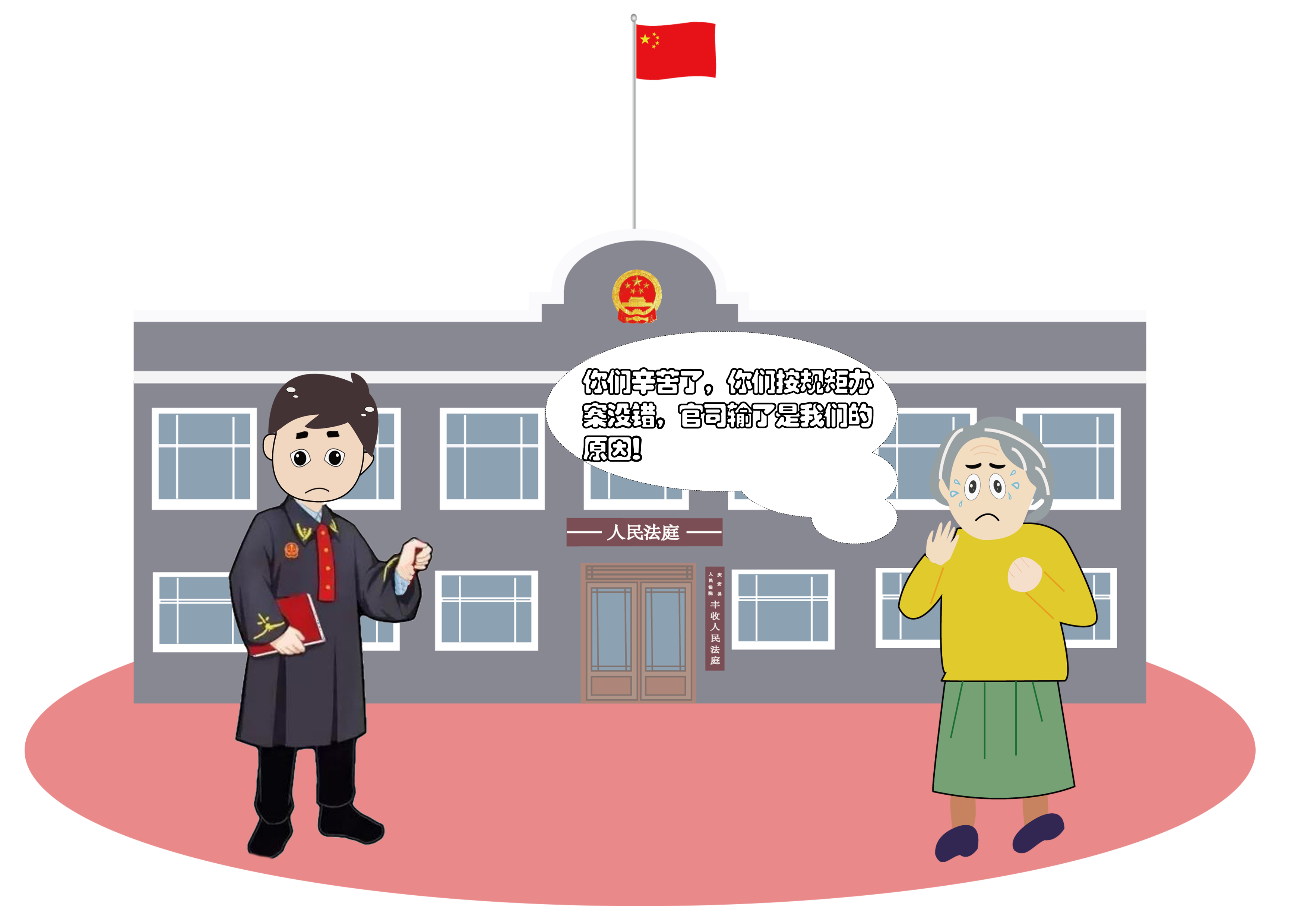在我向原告释明了举证不能的法律后果后,当庭宣判,驳回了原告的诉讼请求。虽然原告表示服判不上诉,但两位老人都是泪流满面。原告的爱人边流泪边说:“都怨我,哪知道他们会不还钱呢?我一个当过老师的人,咋还干出这么蠢的事呢,我怎么就替他们签字了呢!”二老临走的时候还礼貌地向我们说:“你们辛苦了,你们按规矩办案没错,官司输了是我们的原因!”听着老人的淳朴话语,看着二位老人佝偻蹒跚地离去,我们的心不由酸楚起来。