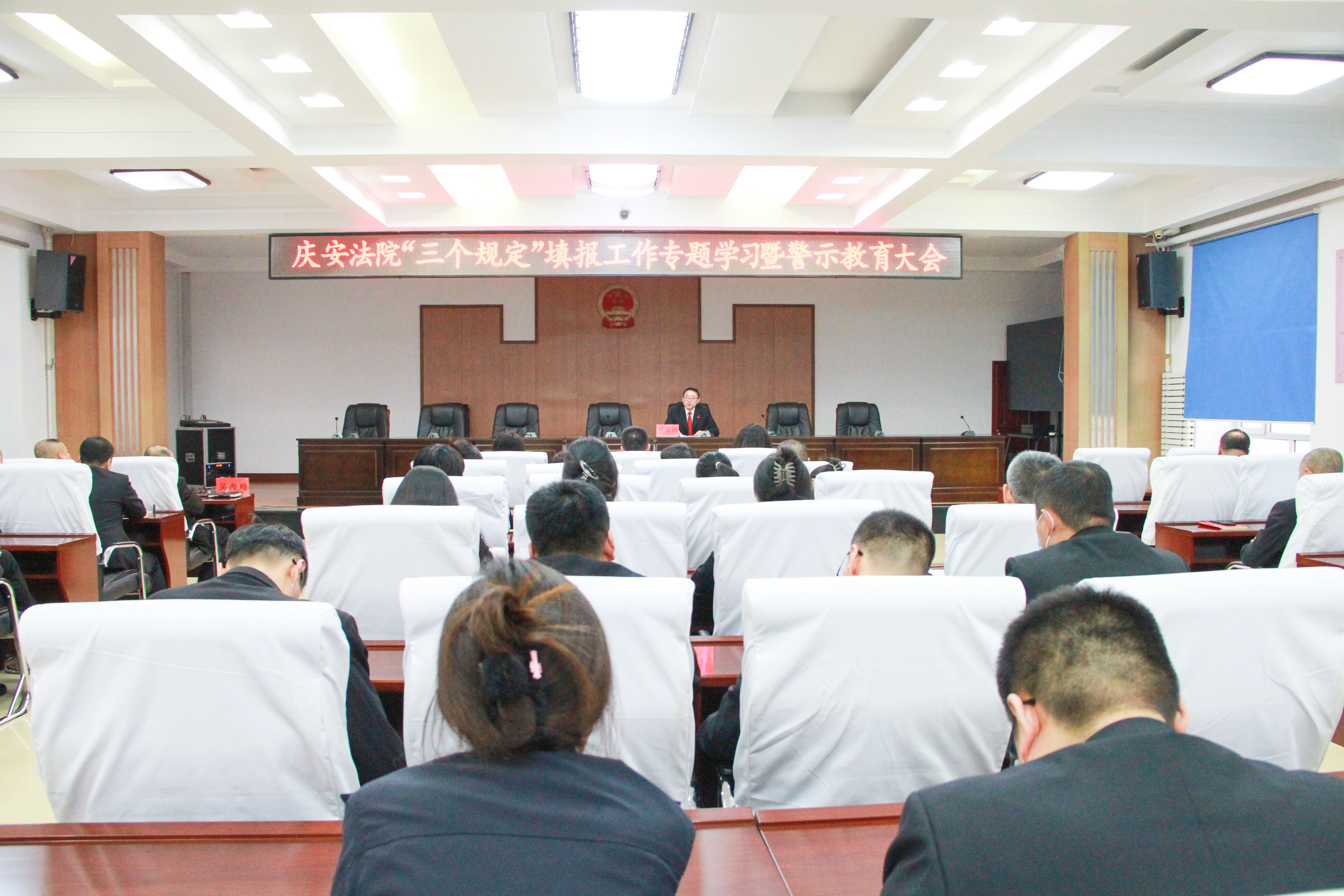 庆安法院召开“三个规定”填报工作专题学习暨警示教育大会