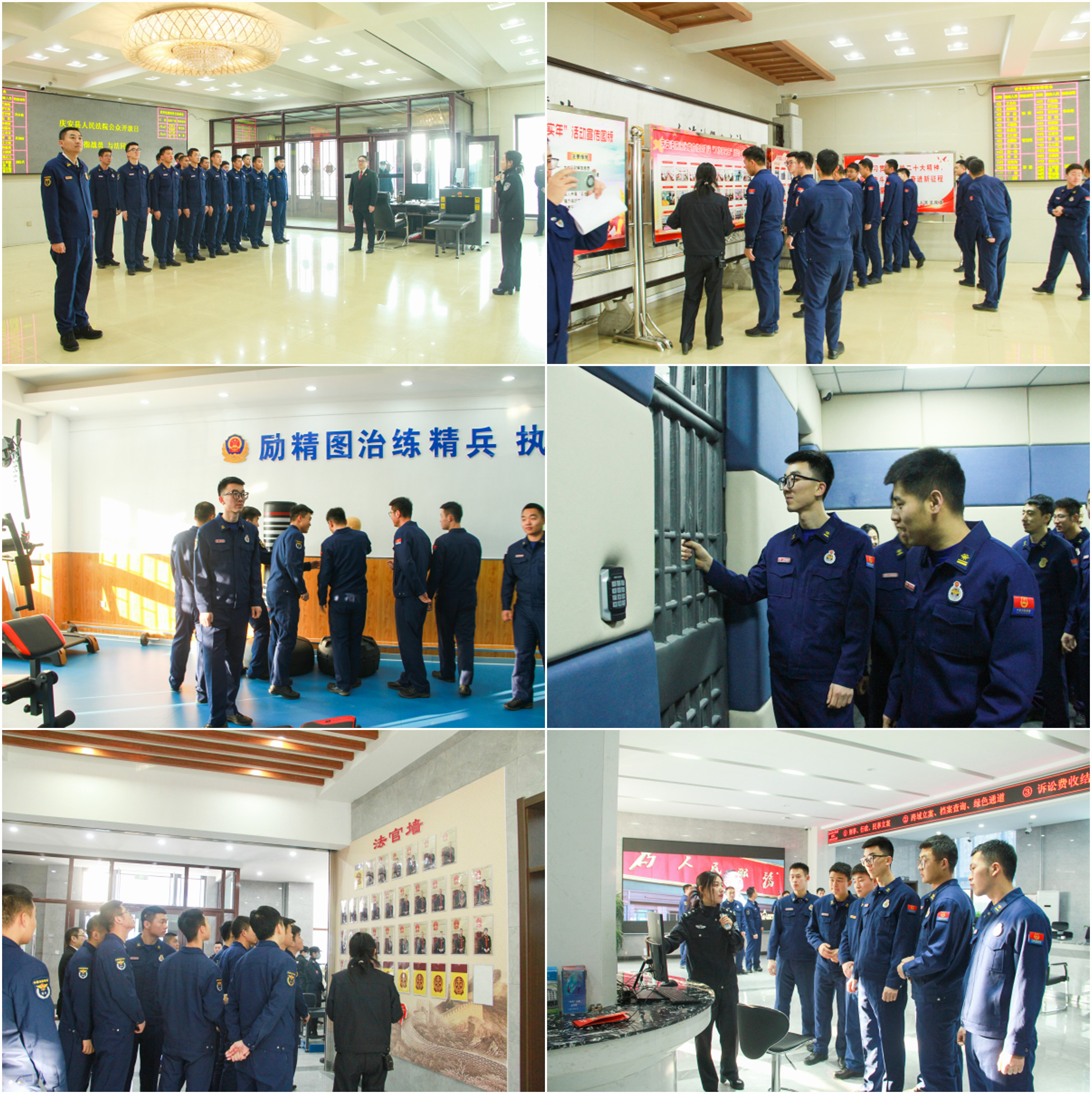 在讲解员的引领下,消防指战员先后参观了法警训练室、诉讼服务中心、廉政文化长廊、党建文化长廊、羁押室、审判法庭等场所,感受着独特的法院文化、辉煌历史和光辉成就。一块块主题鲜明的展板,一个个发人深省的廉政故事,一项项耀眼的荣誉,都营造着清正廉洁的文化氛围,传递着公正司法的价值理念,体现着法律的神圣与权威,直击消防指战员的心灵。