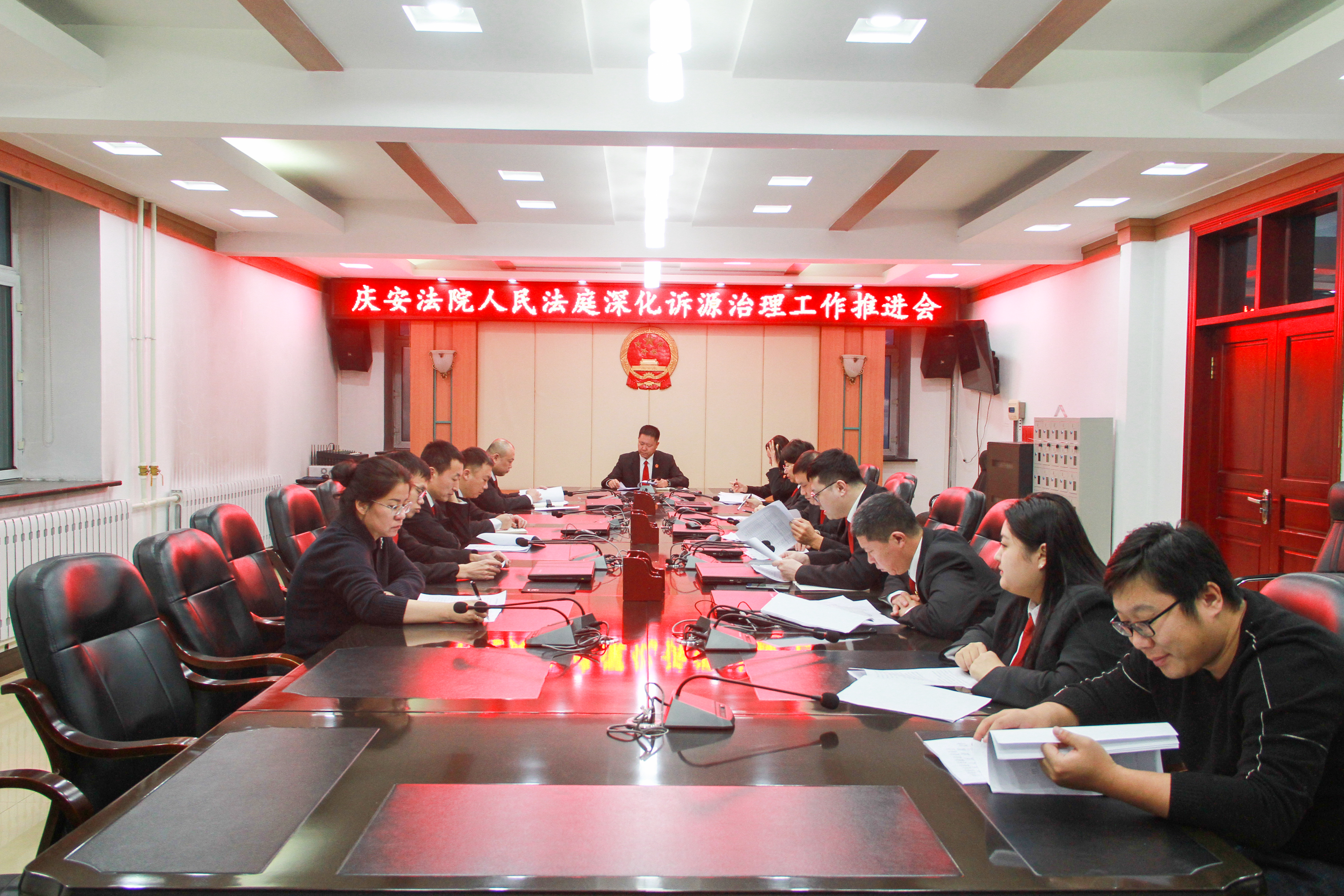 1月23日下午,庆安县人民法院组织召开法庭深化诉源治理工作推进会。党组书记、院长高玉阁出席会议并讲话,党组成员、副院长郭蕾主持会议,法庭相关人员参加会议。