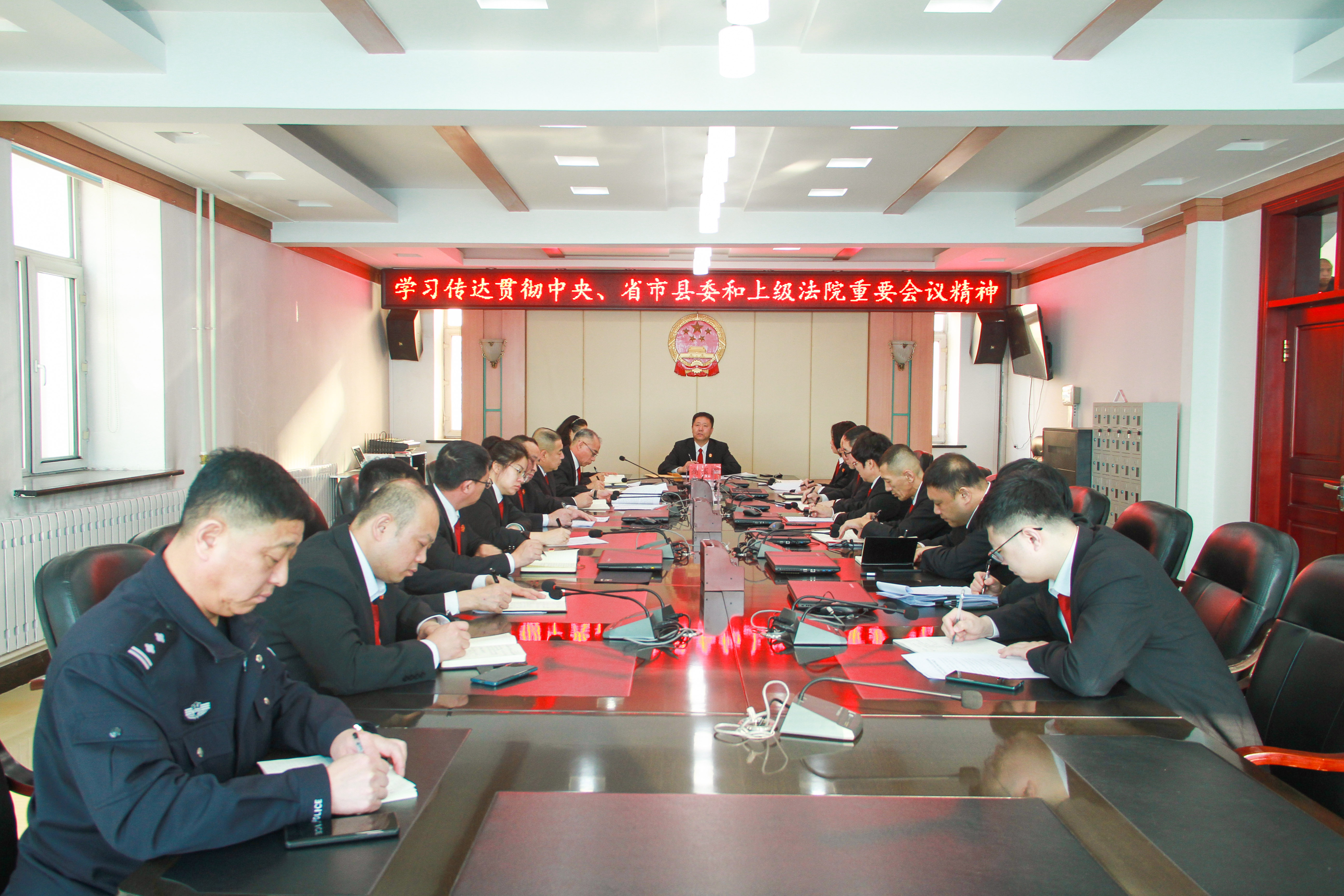 2月5日上午,庆安县人民法院组织召开党组(扩大)会议,学习传达贯彻中央、省市县委和上级法院重要会议精神,党组书记、院长高玉阁主持会议并讲话,党组成员、各部门负责人参加会议。