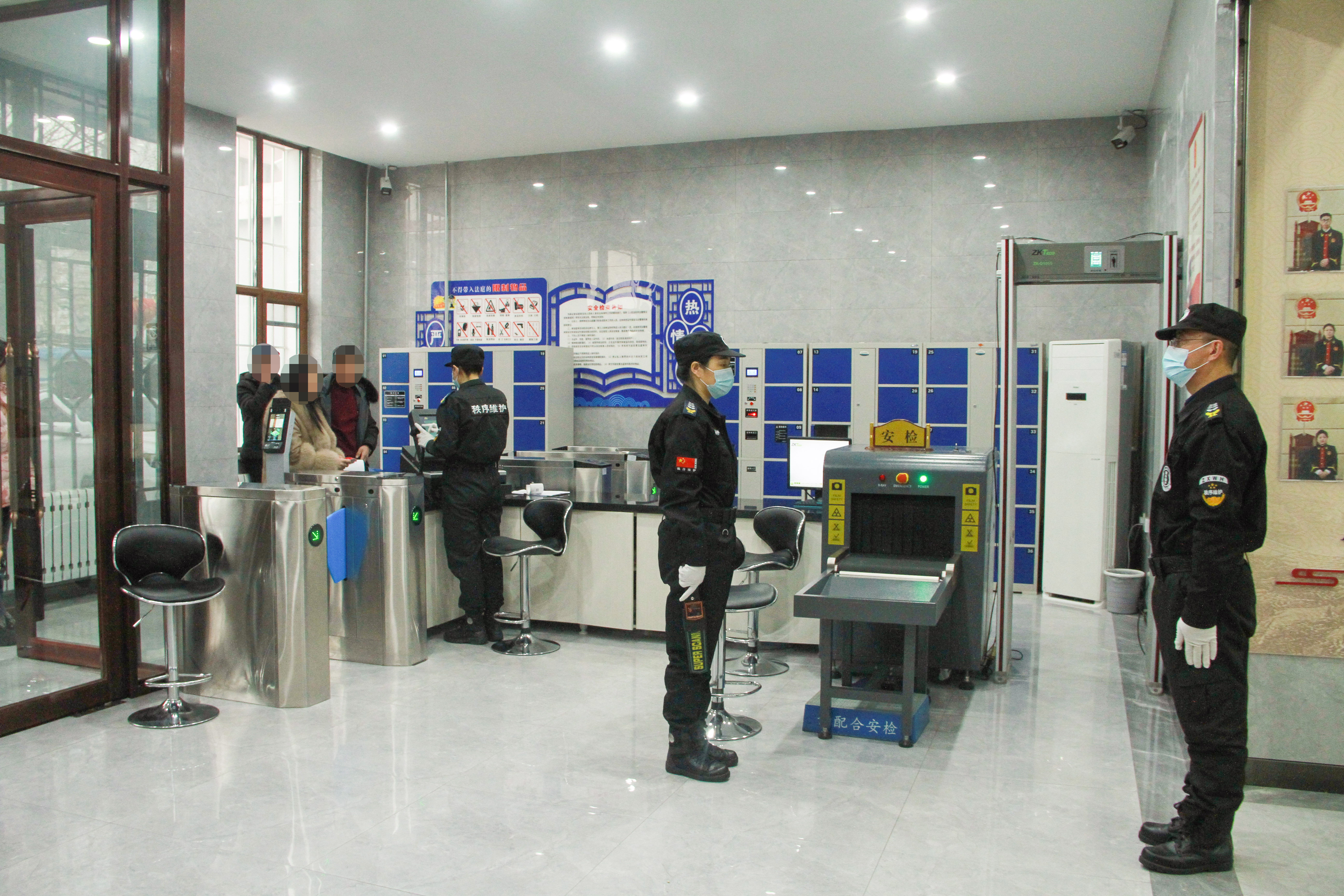 安检区域,值班干警们严把安检关,按照规范操作程序,严格执行安保工作流程,确保当事人及法院干警的安全。