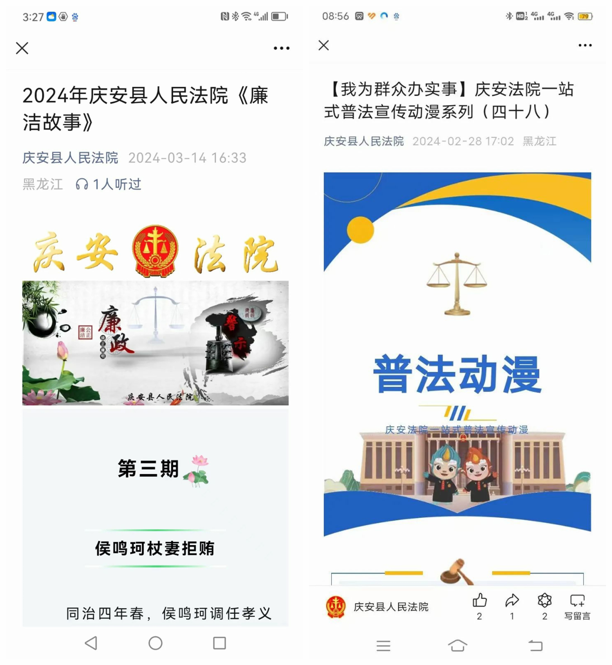 营造廉政警示教育舆论氛围。大力开展廉洁文化进网络活动,在庆安县人民法院公众号定期编发“廉洁故事”专栏,不同的廉政小故事,展示着清廉立身的大哲理。开展“能力作风建设年”“工作落实年”和“我为群众办实事”等多项网络宣传活动,积极营造风清气正、真抓实干、勇于奉献的浓厚氛围,助力全院各项工作高质量发展。