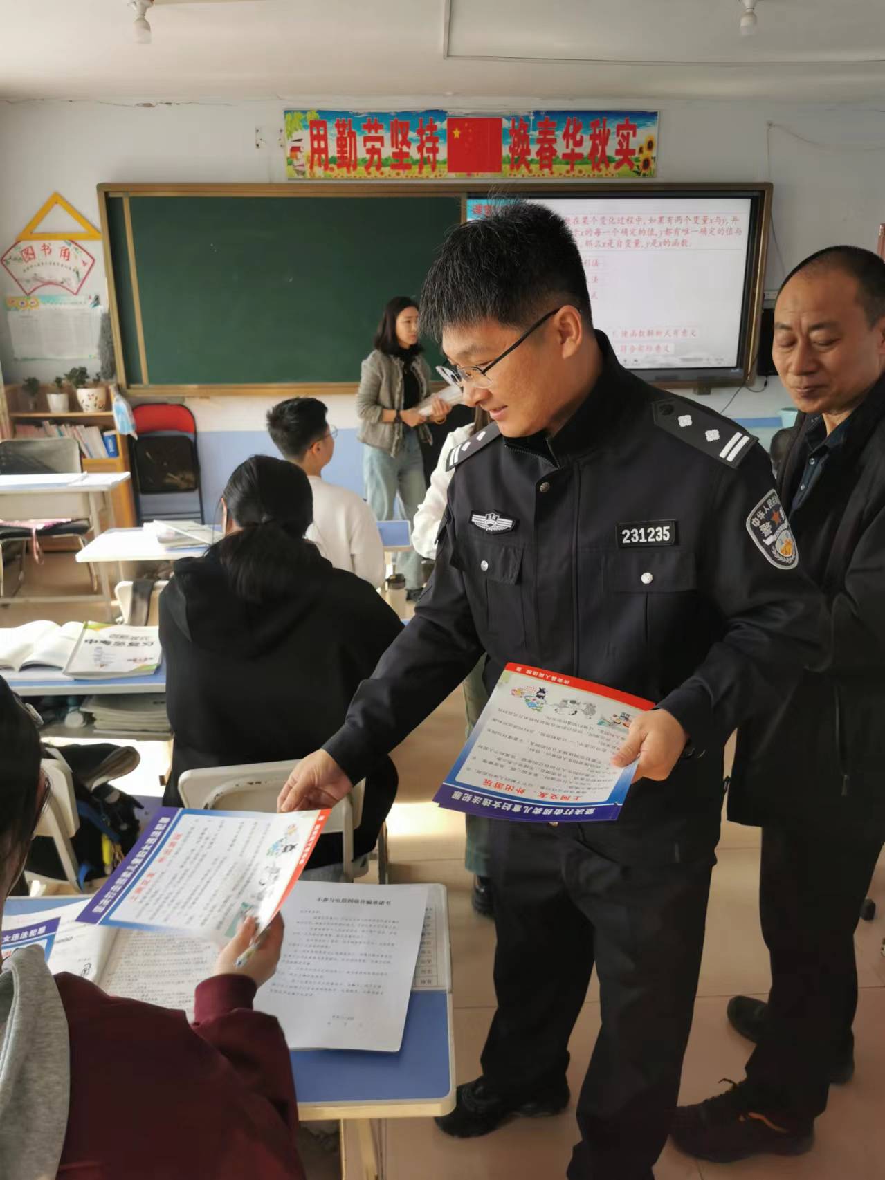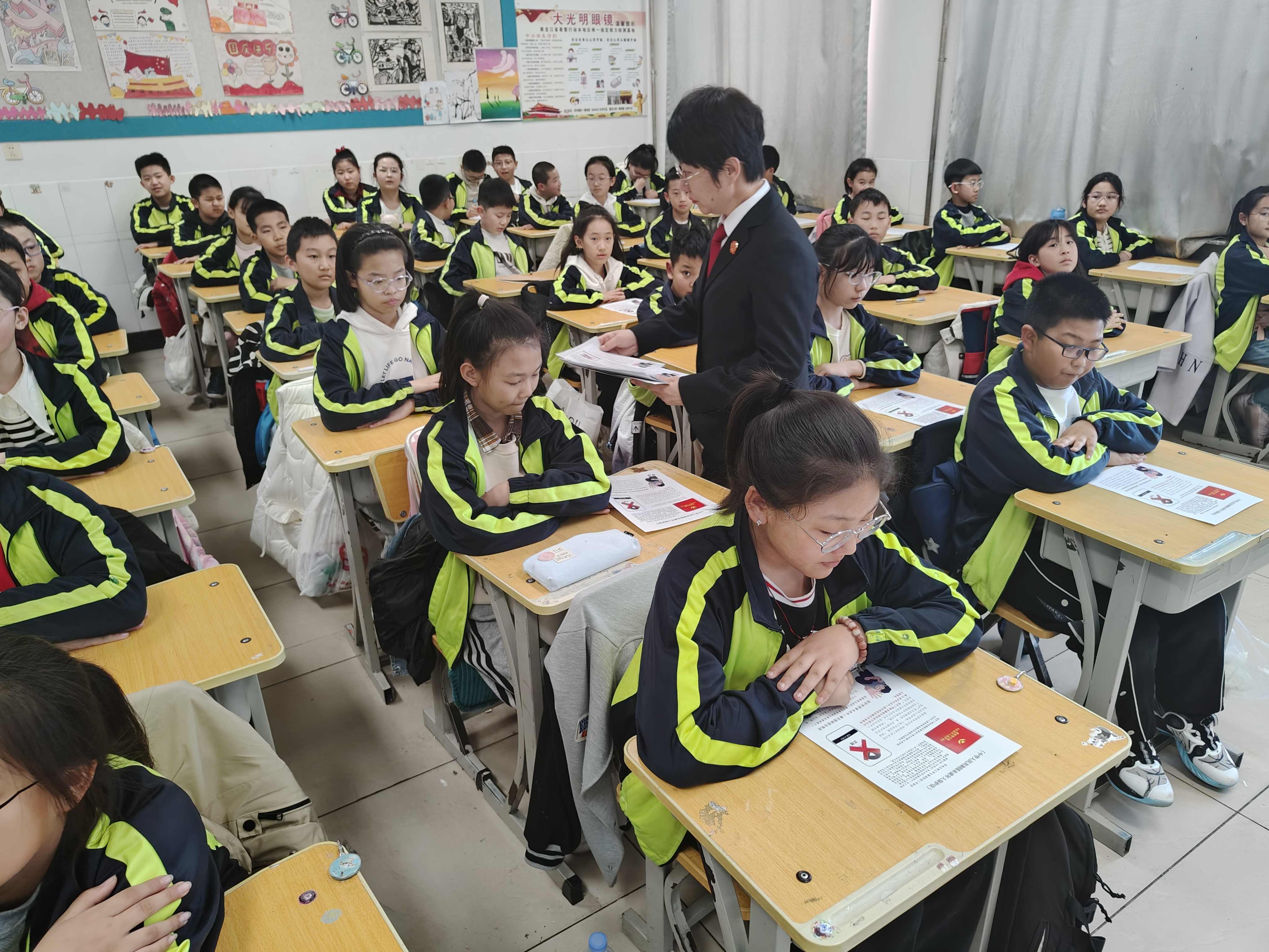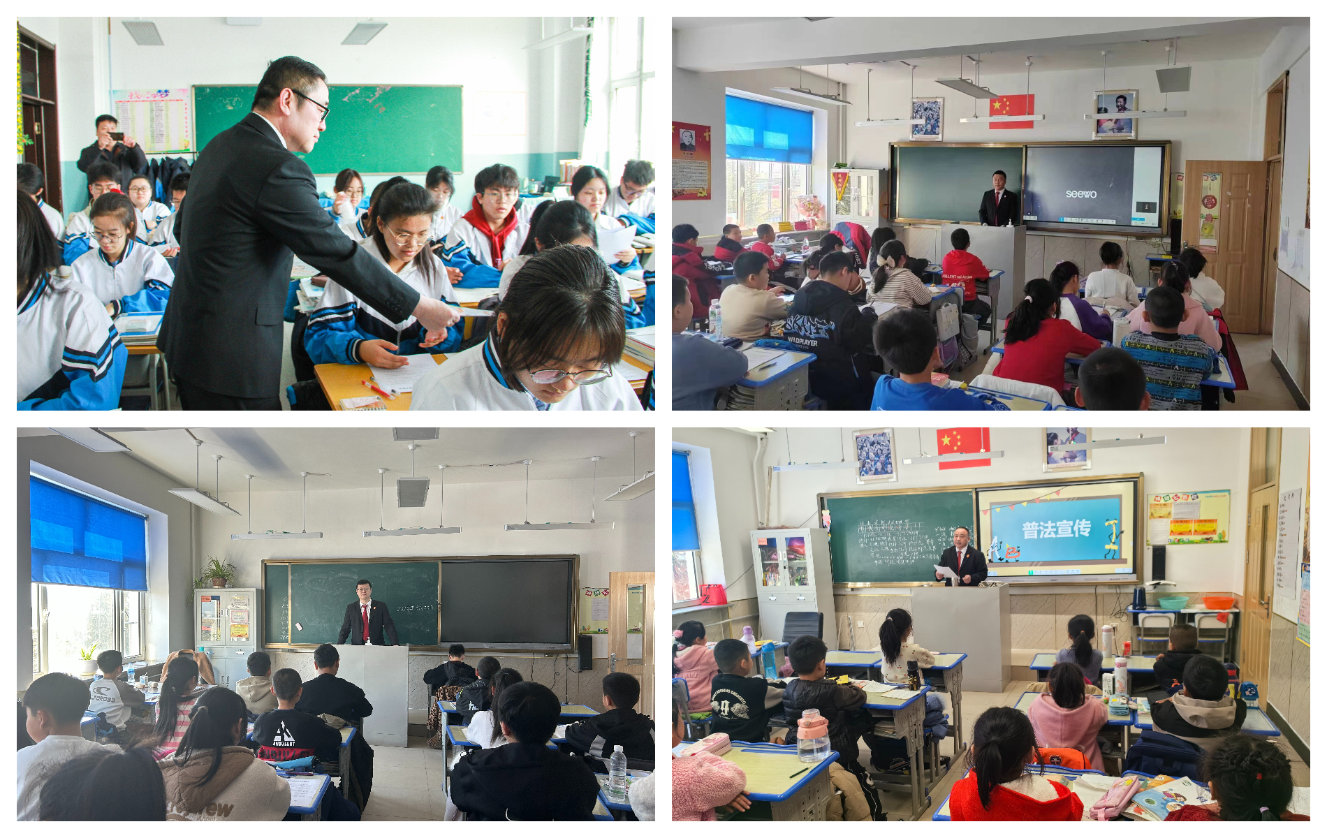 在法治课堂上,法治副校长们结合同学们的年龄特点,利用生动的案例讲解校园欺凌的危害,告诉大家在面对校园欺凌时,要勇敢地说“不”;向同学们发放宣传单页普及防性侵教育知识、防电信网络诈骗知识、未成年人保护的相关法律法规,并通过“以案讲法、以案学法”的方式,用通俗易懂、生动活泼、易于学生接受的语言,为学生讲述了校园周边存在的一些安全隐患,日常生活中应注意的事项,使学生充分认识到在生活中防患于未然的重要性和生命的脆弱与可贵,及时为学校师生敲响安全的警钟,引导大家做尊法、学法、守法、用法的新时代好少年。