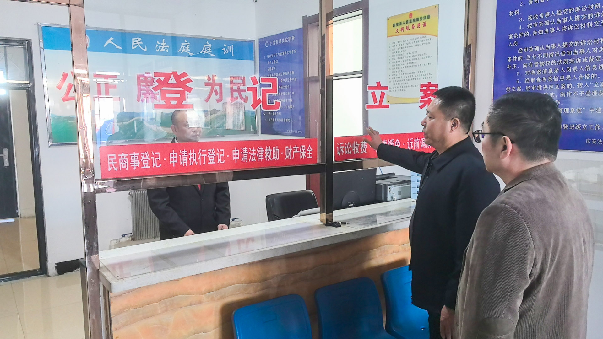 4月9日下午,庆安县人民法院党组书记、院长高玉阁来到勤劳法庭开展“走流程”活动,以换位思考的方式了解群众司法需求,感知群众司法难题,将司法为民落到实处。