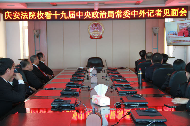 庆安法院组织干警集中收看十九届 中央政治局常委中外记者见面会盛况