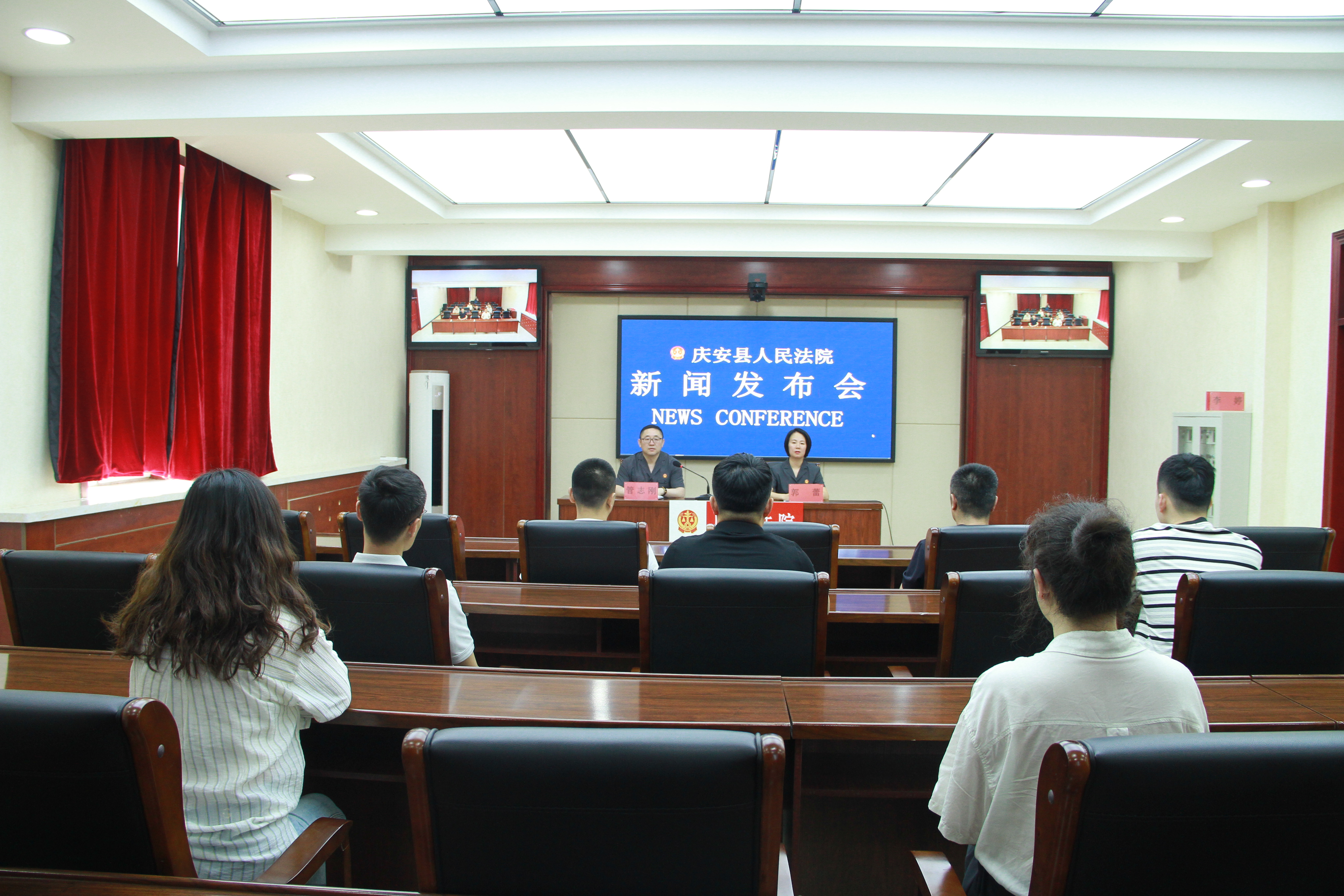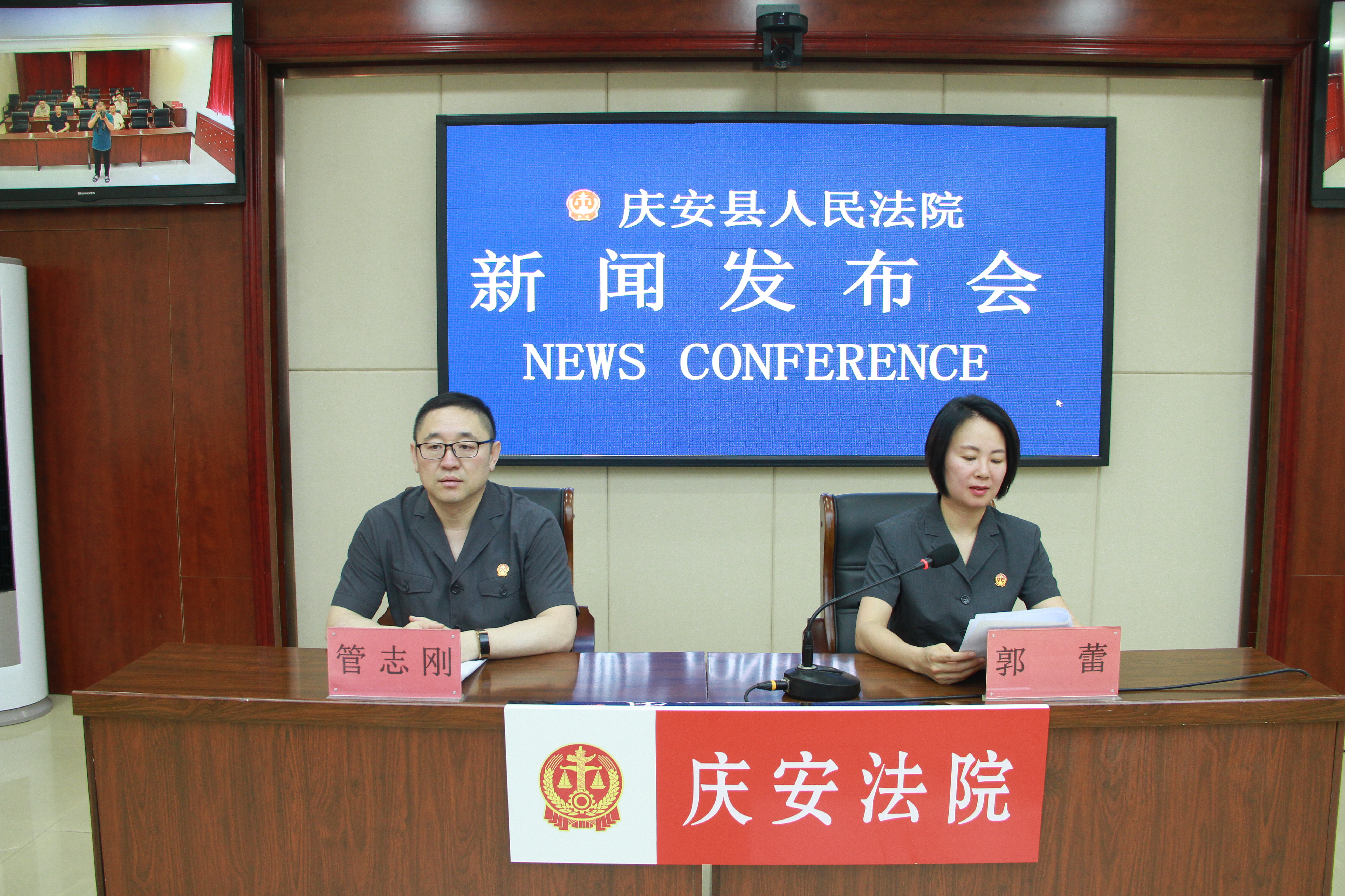 7月4日,庆安县人民法院召开新闻发布会,向媒体通报“枫桥式人民法庭”创建情况。党组成员、副院长郭蕾主旨发布,党组成员、政治部主任管志刚主持会议。