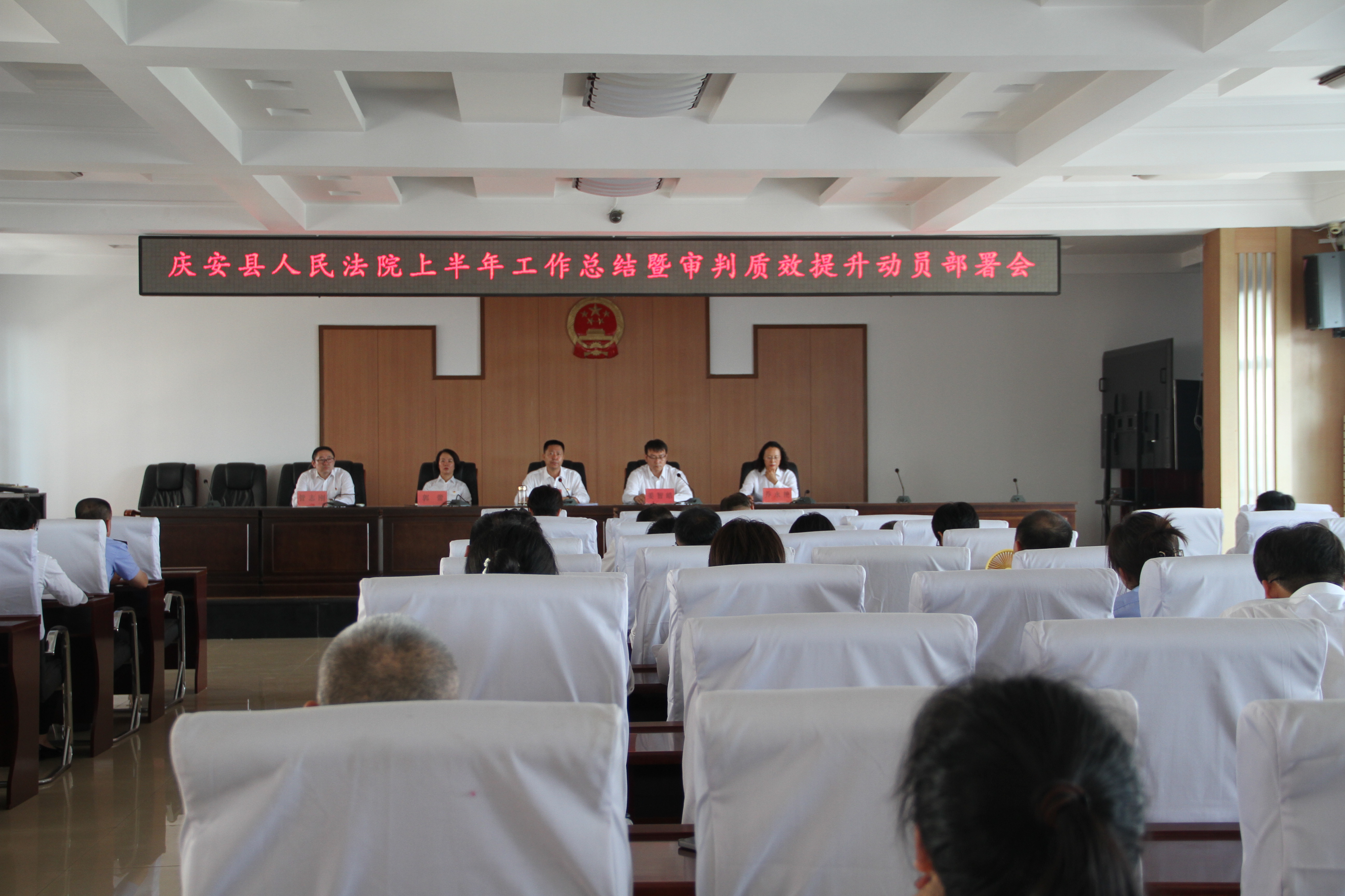 7月22日,庆安县人民法院召开2024年上半年工作总结暨审判质效提升动员部署会议。党组书记、院长高玉阁主持会议,全体干警参加会议。