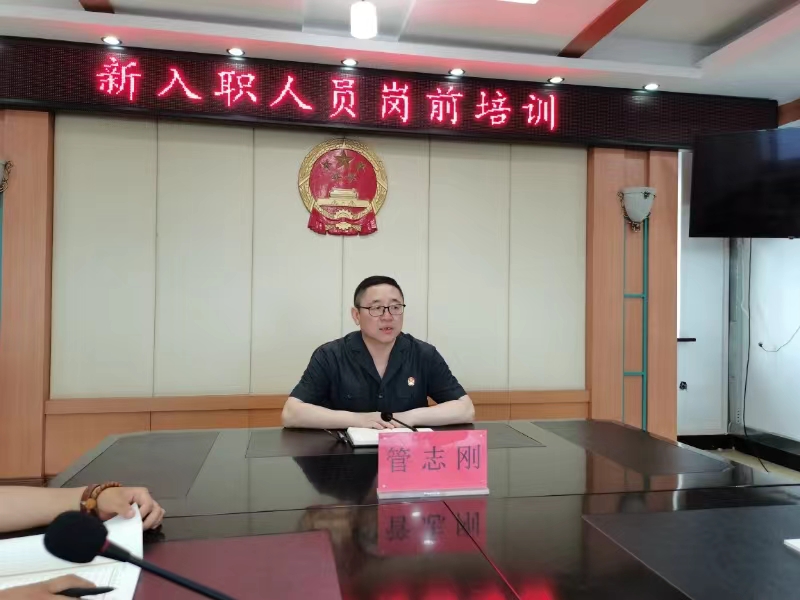 7月30日,庆安县人民法院对新入职人员进行岗前培训。党组成员、政治部主任管志刚主持培训并讲话。
